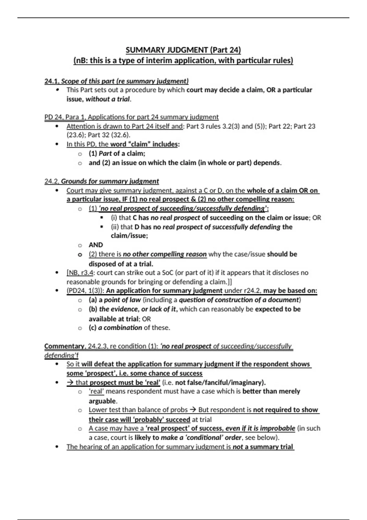 This Part sets out a procedure by which court may decide a claim, OR a particular