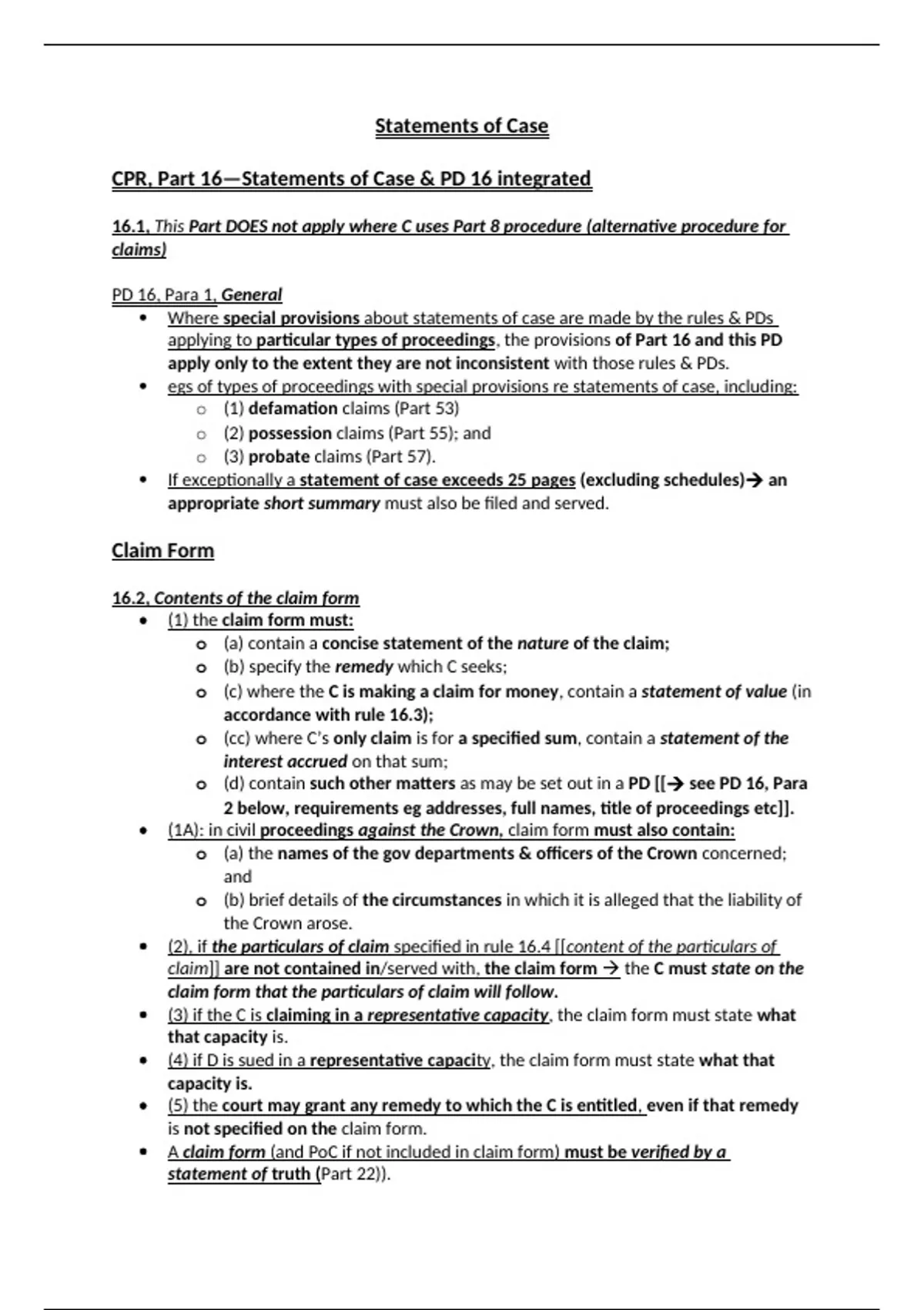 CPR, Part 16—Statements of Case & PD 16 integrated