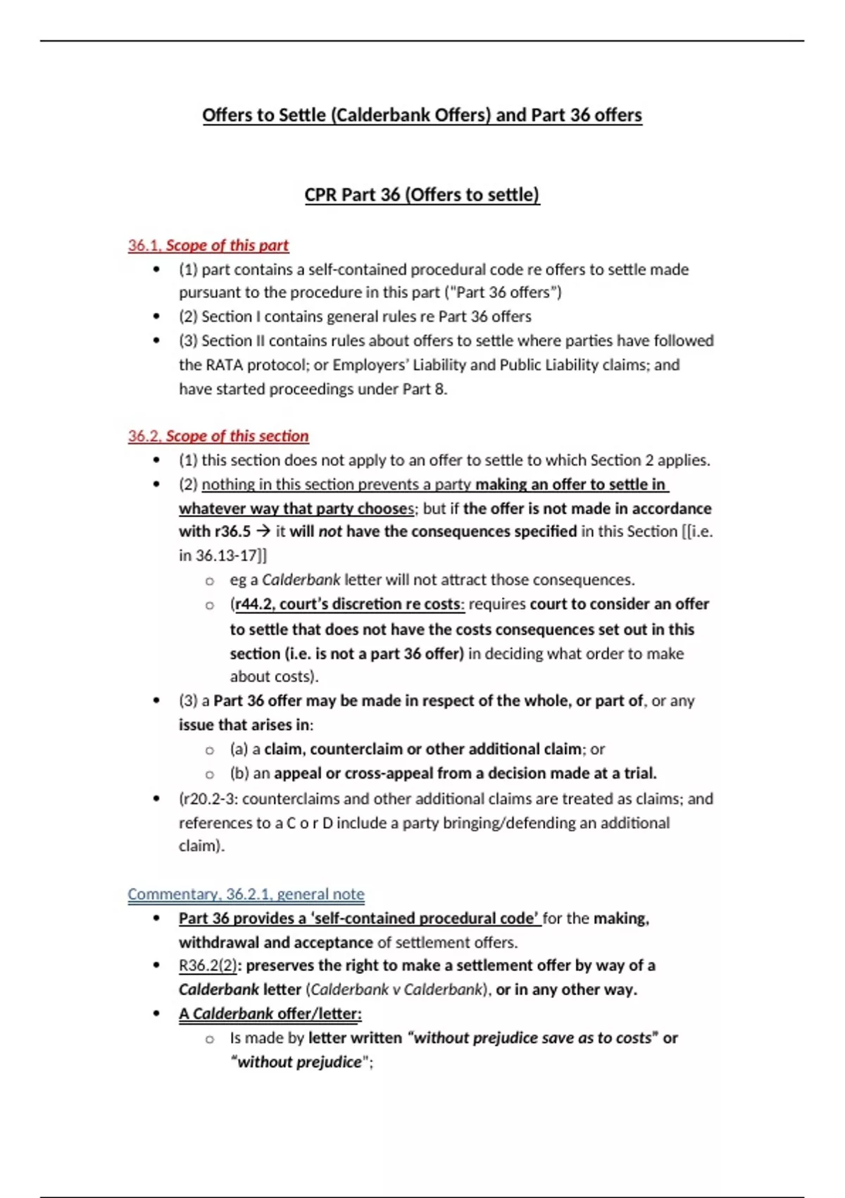 Offers to Settle (Calderbank Offers) and Part 36 offers