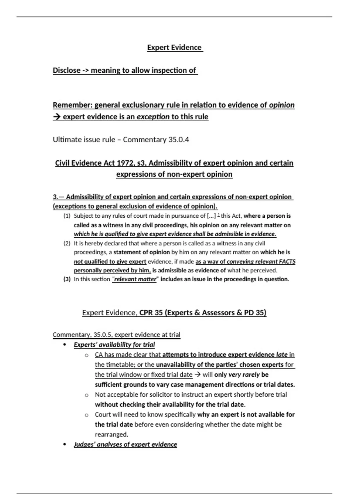 Expert Evidence, CPR 35 (Experts & Assessors & PD 35)