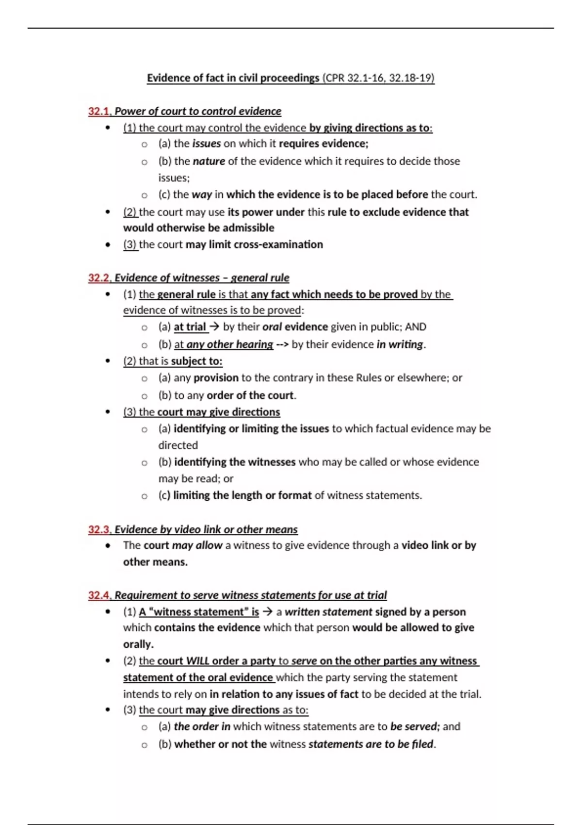 Evidence of fact in civil proceedings (CPR 32.1-16, 32.18-19)