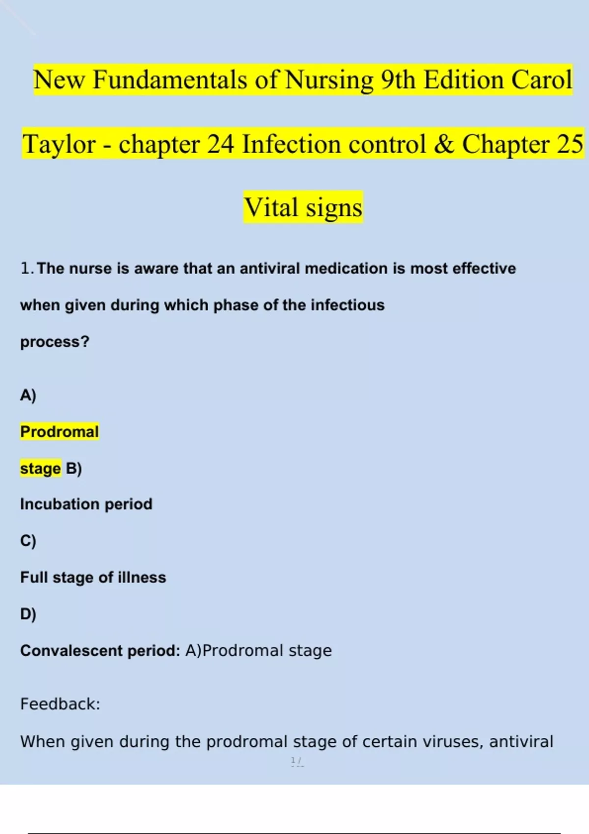Convalescent period: A)Prodromal stage