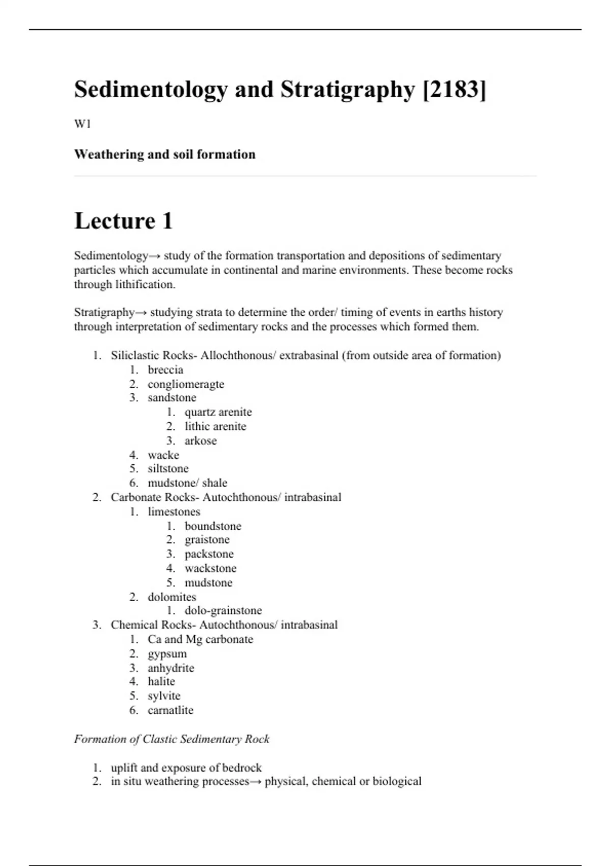 Sedimentology→ study of the formation transportation and depositions of sedimentary