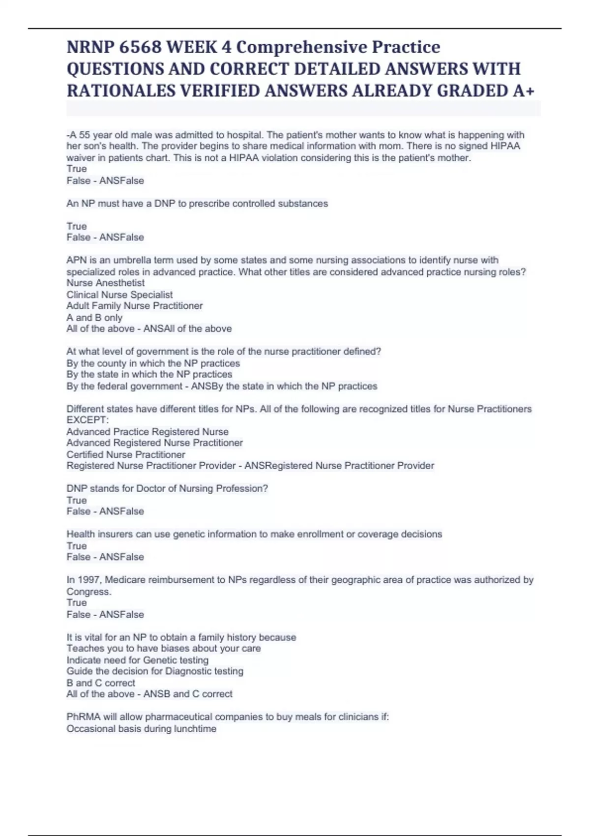 nrnp 6568 week 4 comprehensive practice questions