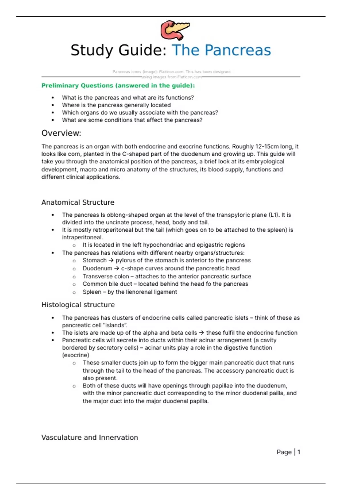take you through the anatomical position of the pancreas, a brief look at its embryological