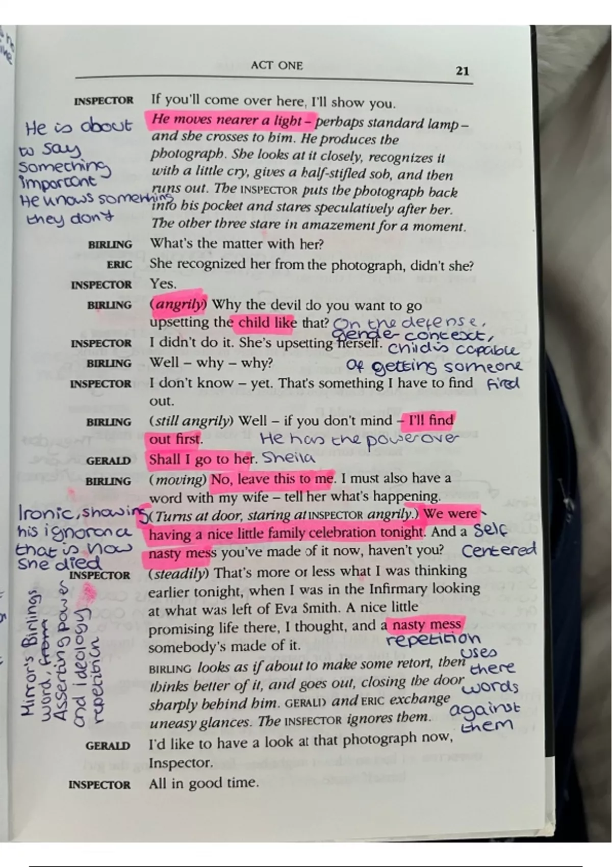 Enhance your grasp of "An Inspector Calls" Act One with our detailed annotations designed for AQA GCSE English Literature. Our annotations break down the key elements of the play, helping you navigate themes, characters, and literary techniques seamlessly. Ideal for students seeking clarity or teachers in need of a practical teaching aid, our annotations provide a straightforward approach to understanding Act One. Improve your analysis and exam performance without unnecessary hype. Simplify your study routine and order our annotations today for a more straightforward and effective learning experience.