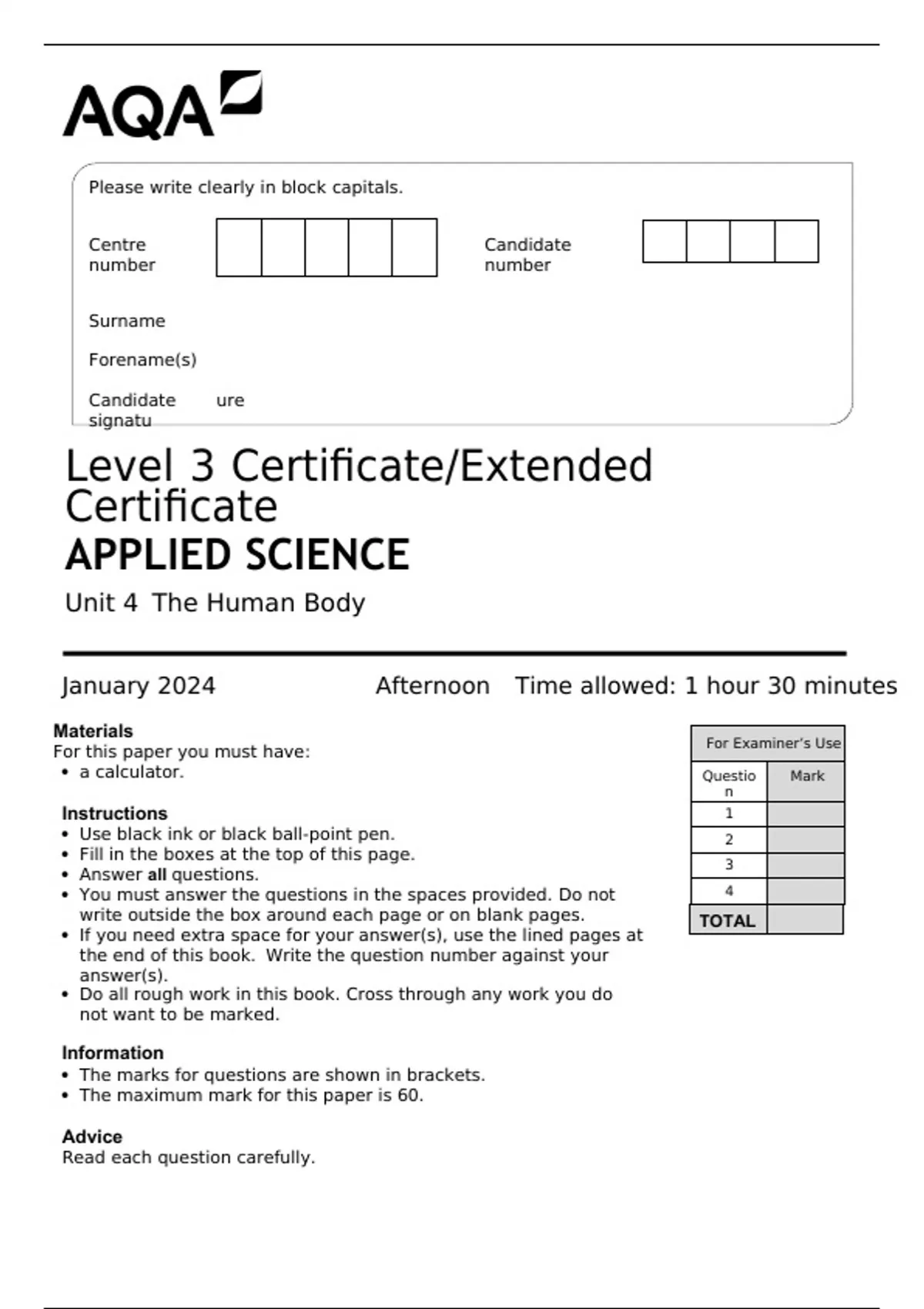 January 2024 Afternoon Time allowed: 1 hour 30 minutes