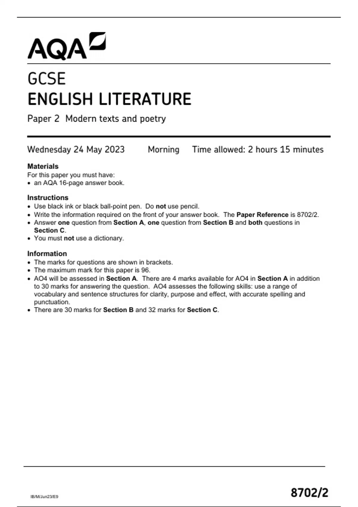 • AO4 will be assessed in Section A. There are 4 marks available for AO4 in Section A in addition