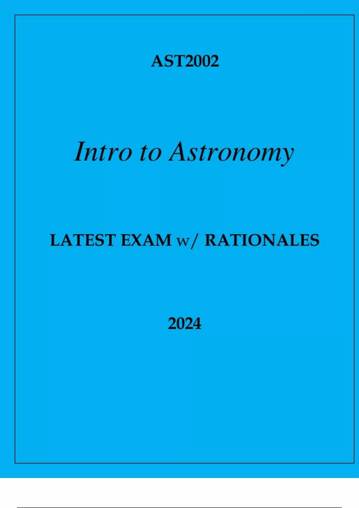 AST2002 INTRO TO ASTRONOMY LATEST EXAM WITH RATIONALES 2024.