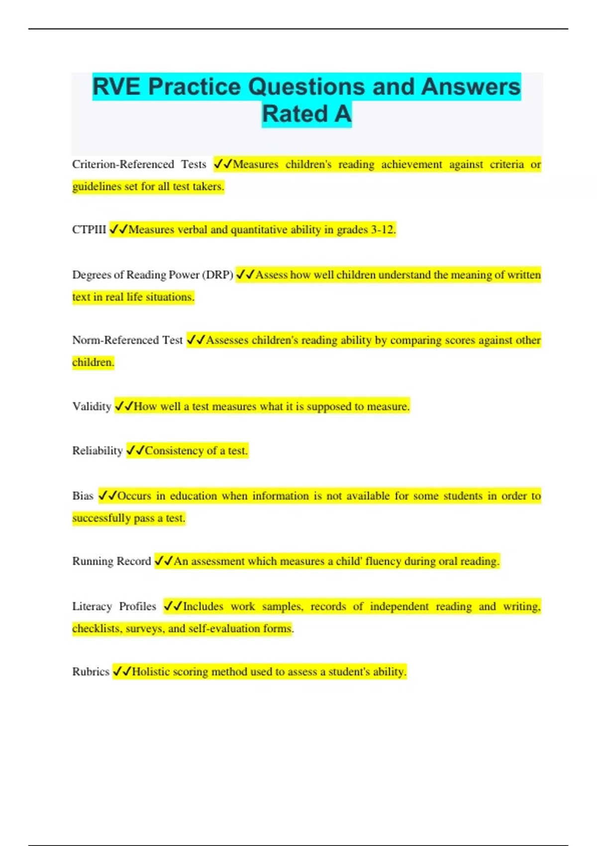 RVE Practice Questions and Answers Rated A