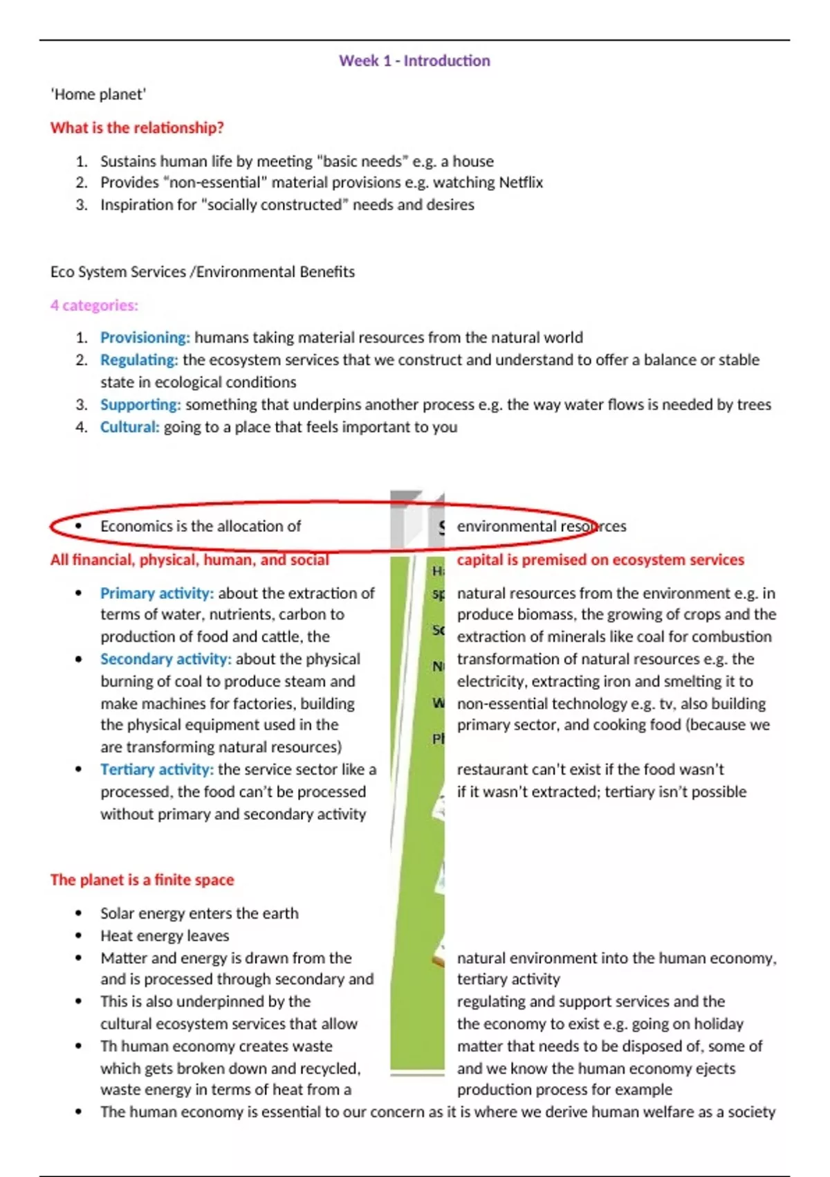 cultural ecosystem services that allow the economy to exist e.g. going on holiday