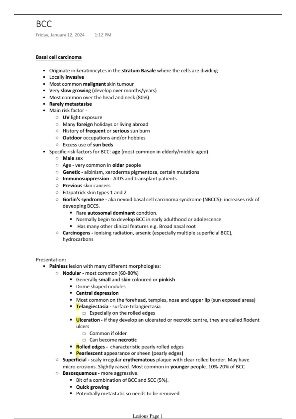 • Specific risk factors for BCC: age (most common in elderly/middle aged)