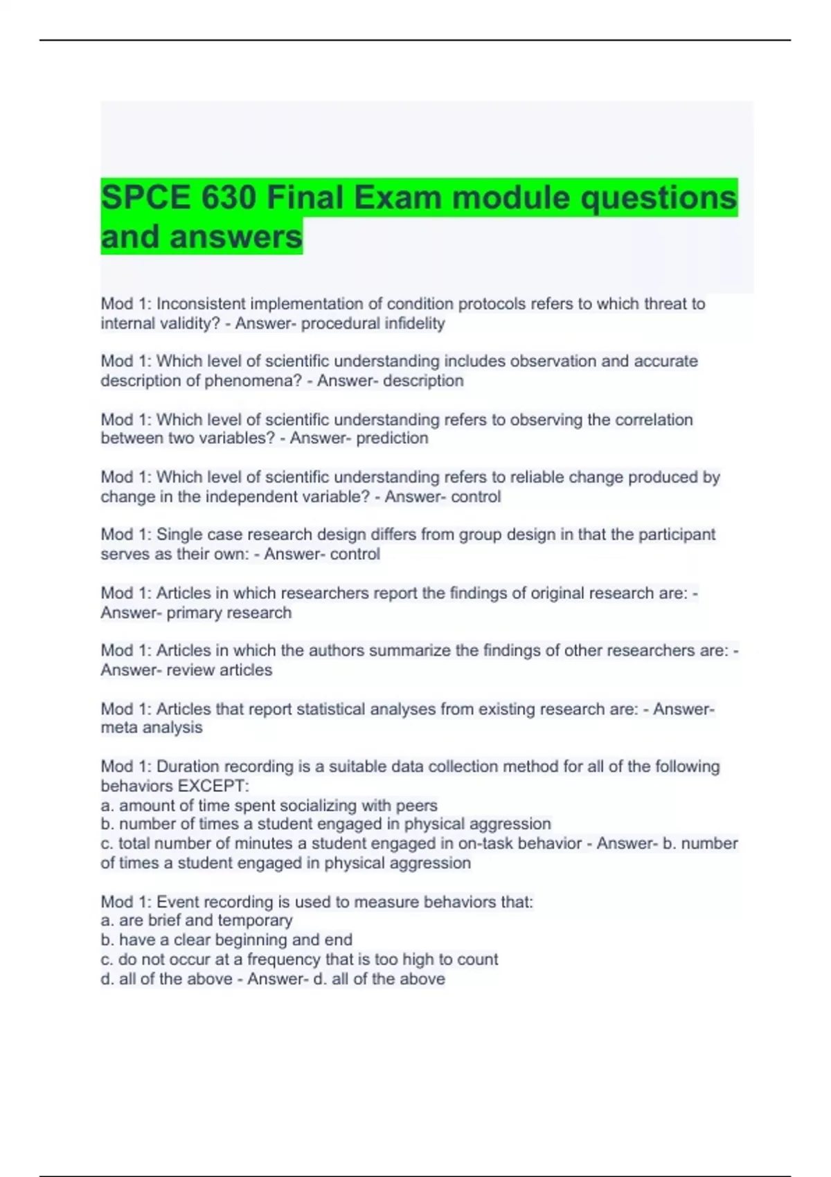 spce 630 final exam module questions and answers