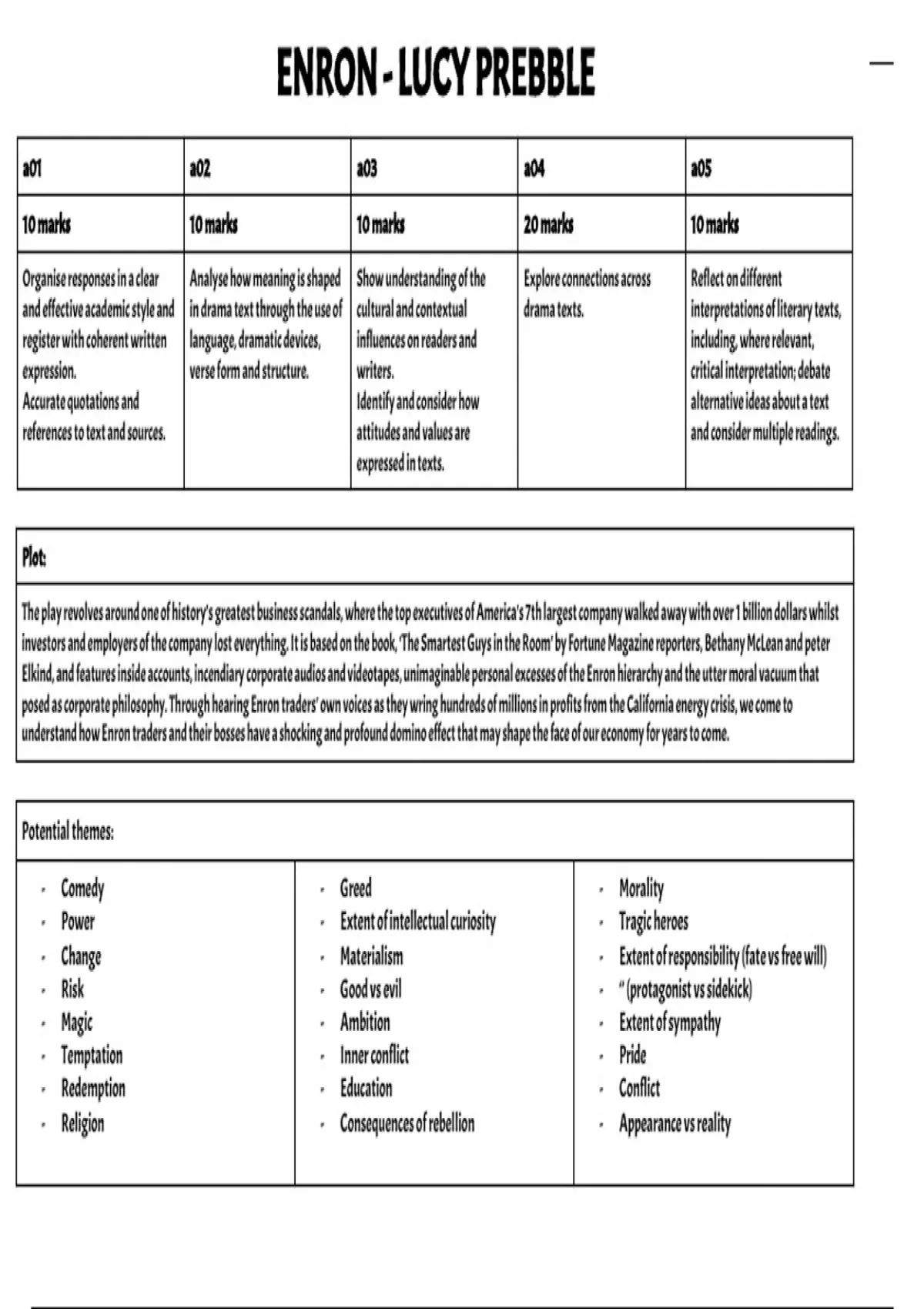 - Power - Extent of intellectual curiosity - Tragic heroes
