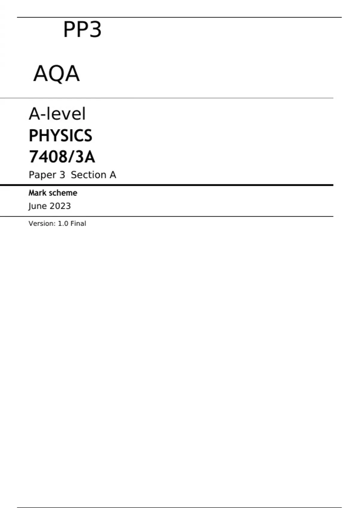 AQA A-level PHYSICS 7408/3A Paper 3 Section A JUNE 2023 > FINAL MARK SCHEME