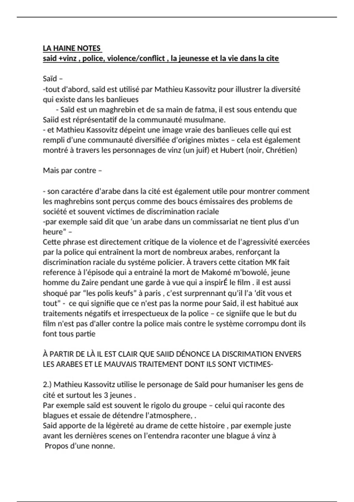 2.) Mathieu Kassovitz utilise le personage de Saïd pour humaniser les gens de