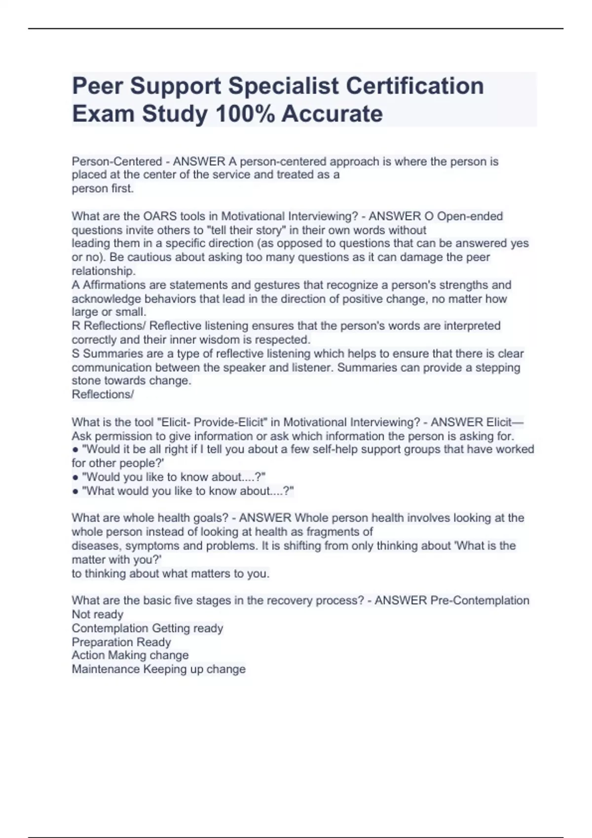 Peer Support Specialist Certification Exam Study 100% Accurate