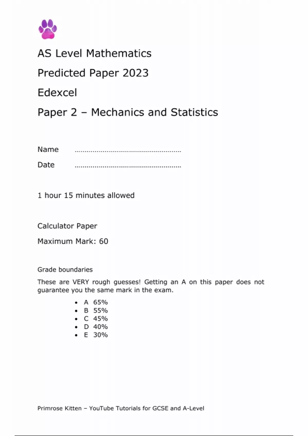 EDEDXCEL AS LEVEL MATHEMATICS PAPER 2 MECHANICS AND STATISTICS PREDICTED PAPER 2023