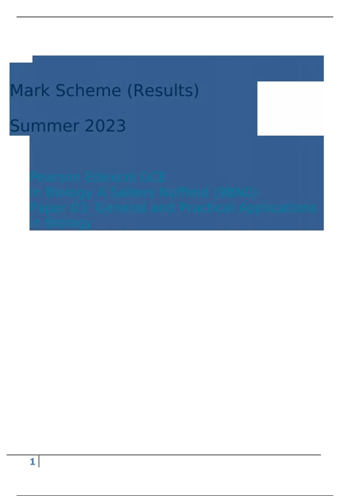 Pearson Edexcel GCE In Biology A Salters Nuffield (9BN0) Paper 03: General and Practical Applications in Biology Marking scheme June 2023