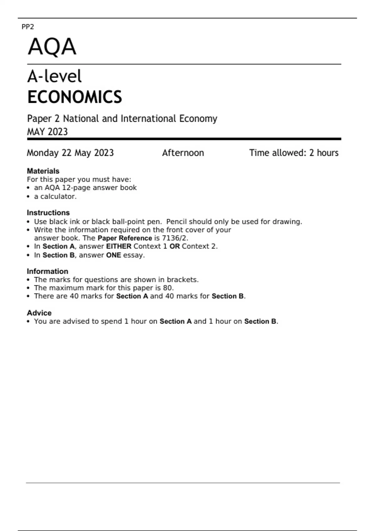 AQA A-level ECONOMICS Paper 2 MAY 2023 FINAL QUESTION PAPER National and International Economy