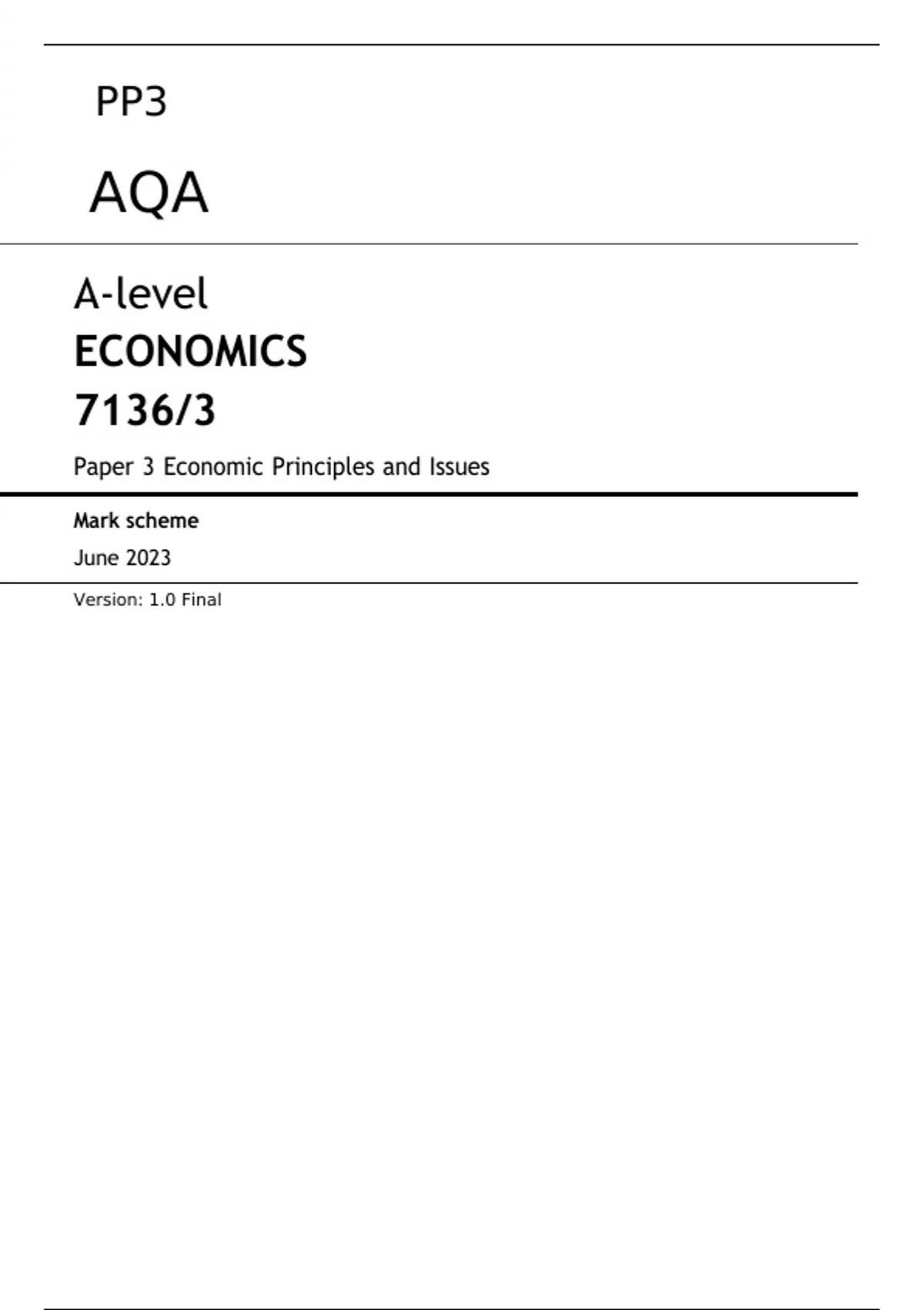 AQA A-level ECONOMICS 7136/3 Paper 3 June 2023 FINAL MARK SCHEME Economic Principles and Issues