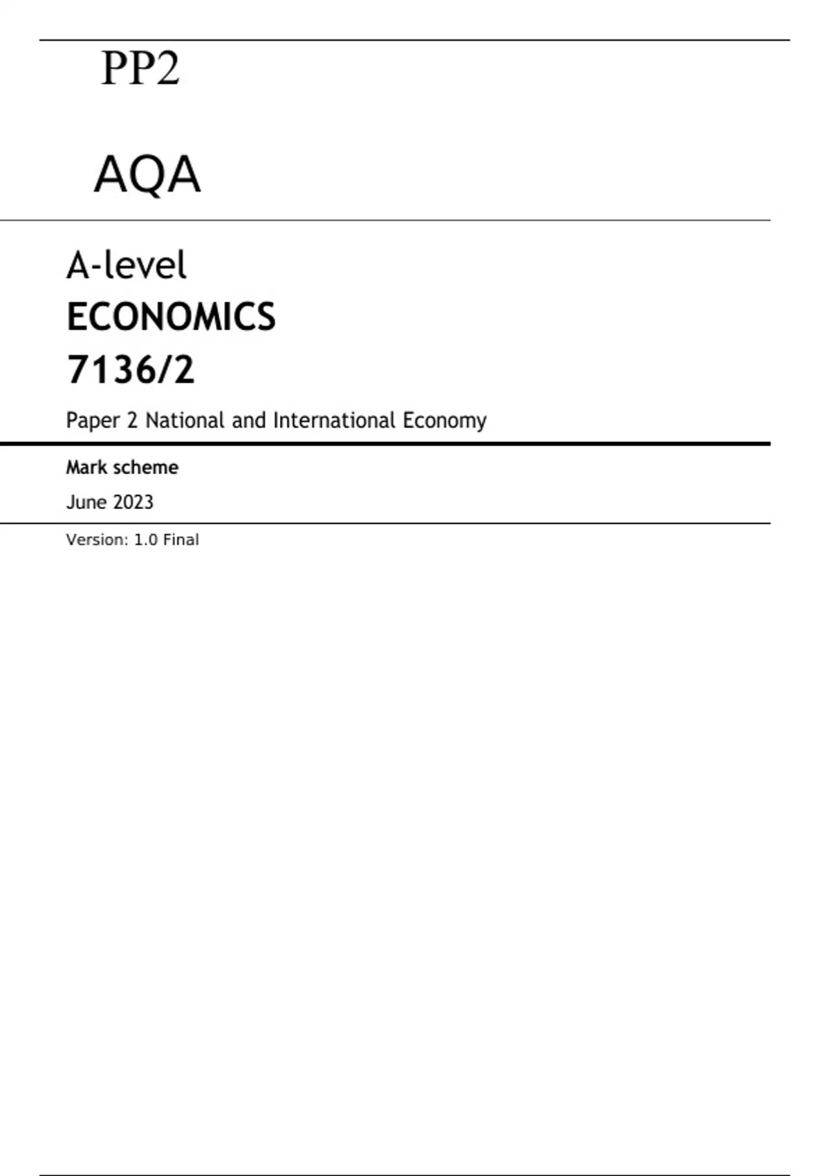 AQA A-level ECONOMICS 7136/2 Paper 2 June 2023 FINAL MARK SCHEME National and International Economy