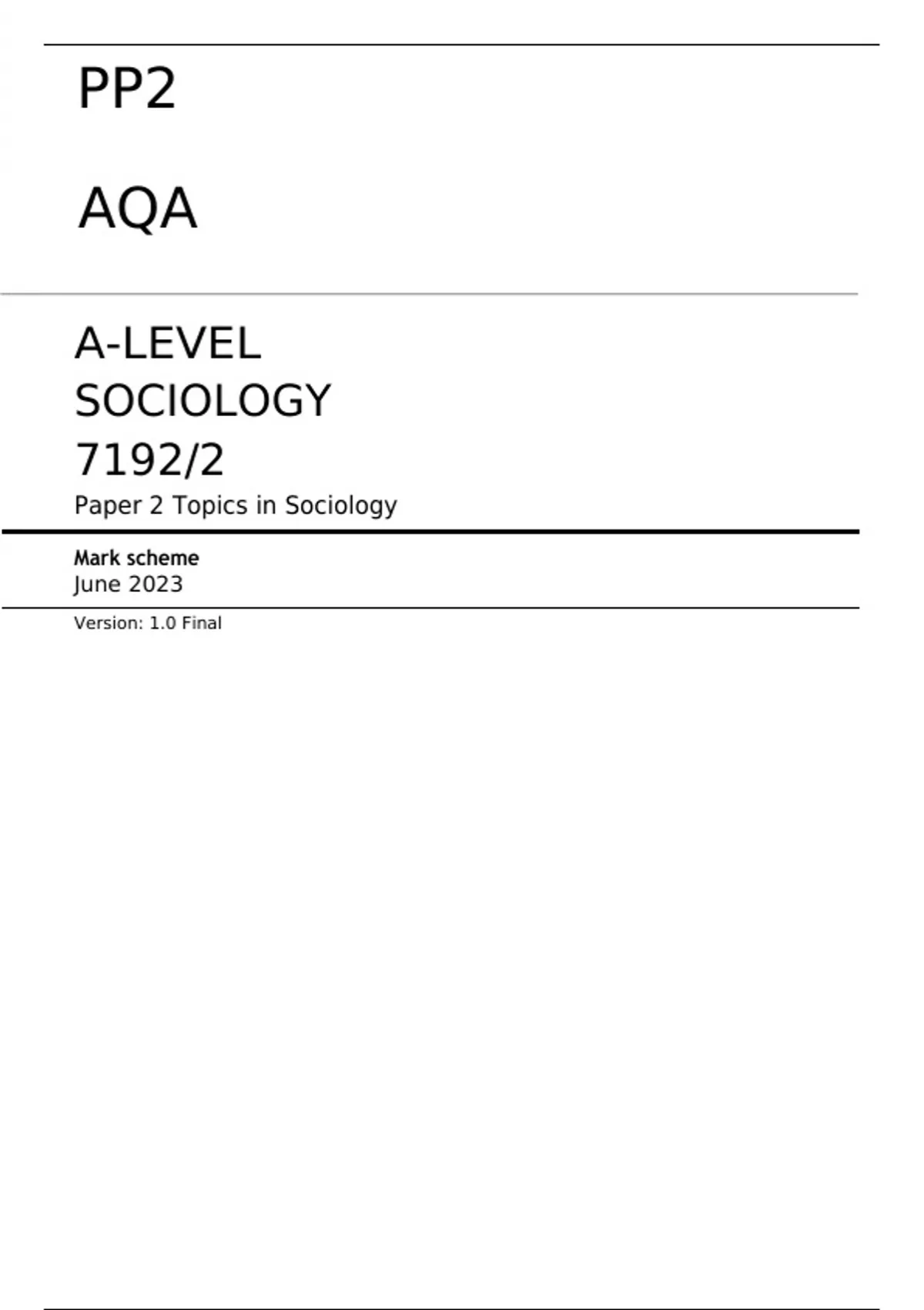 AQA A-LEVEL SOCIOLOGY 7192/2 Paper 2 June 2023 FINAL MARK SCHEME Topics in Sociology