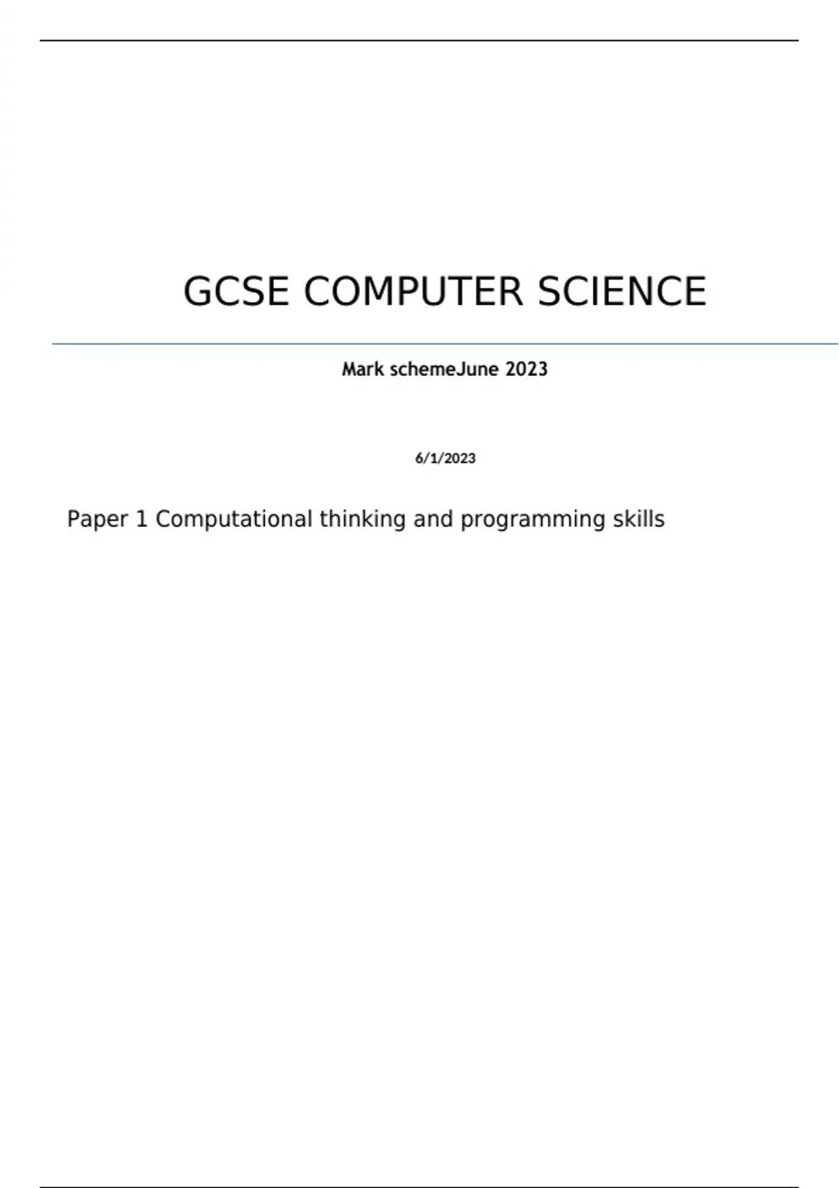 , MARK SCHEME – GCSE COMPUTER SCIENCE – 8525/1 –