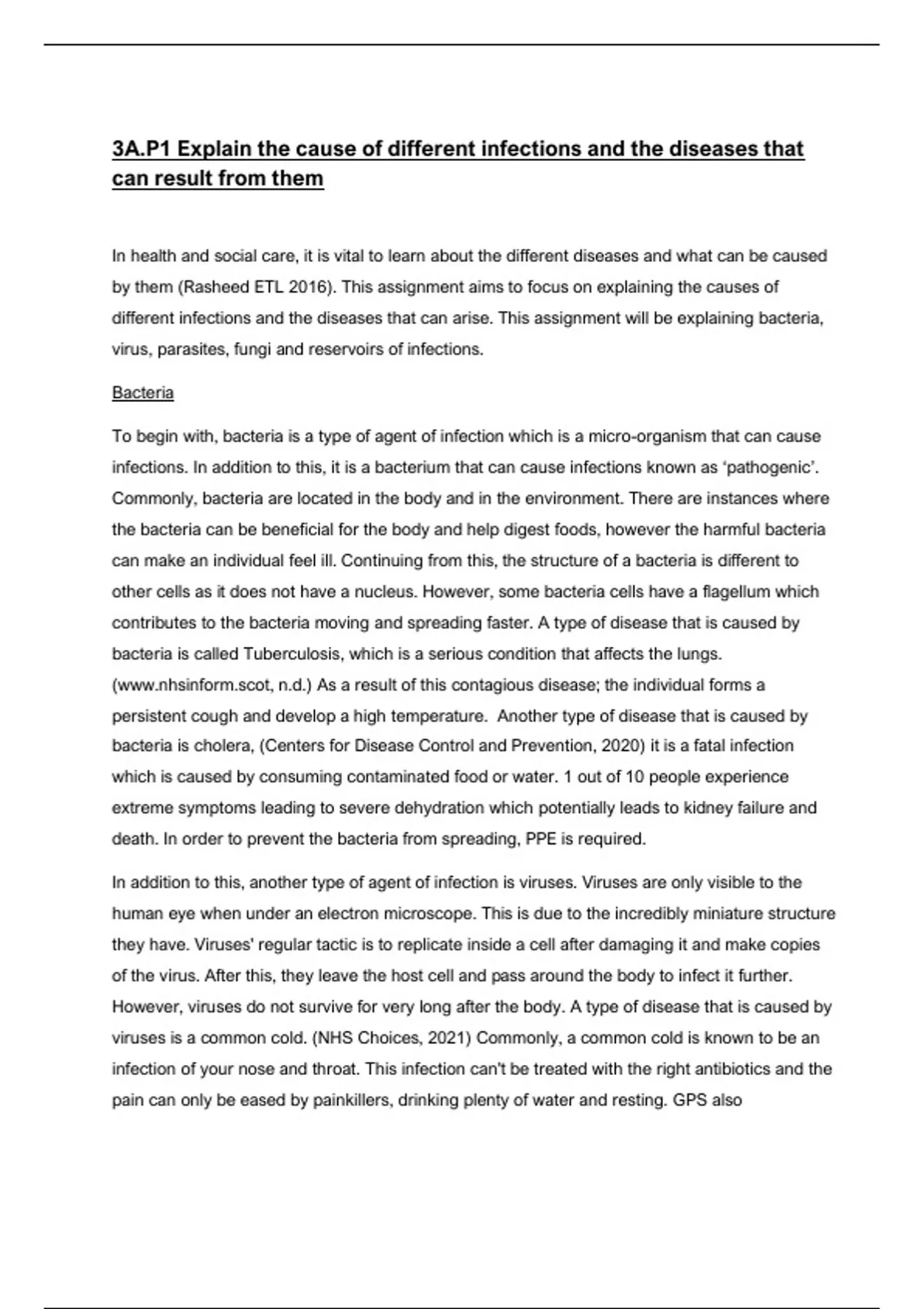 3A.P1 Explain the cause of different infections and the diseases that