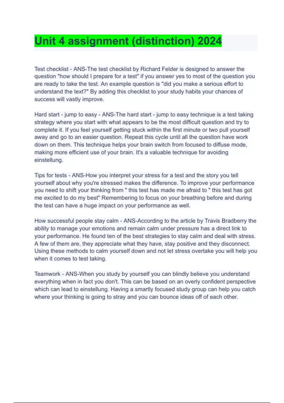 Test checklist - ANS-The test checklist by Richard Felder is designed to answer the question "how should I prepare for a test" if you answer yes to most of the question you are ready to take the test. An example question is "did you make a serious effort to understand the text?" By adding this checklist to your study habits your chances of success will vastly improve.