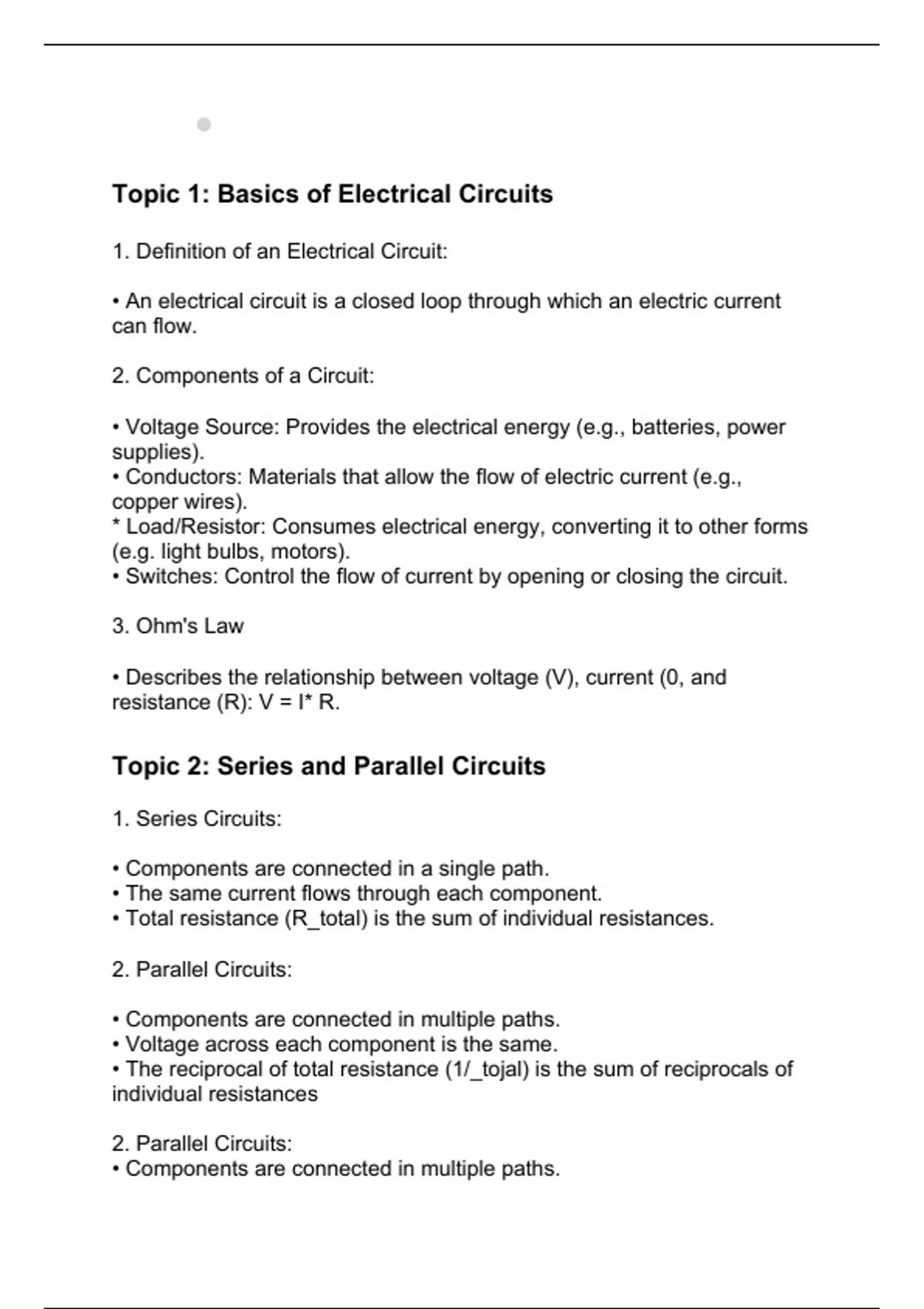Topic 1: Basics of Electrical Circuits