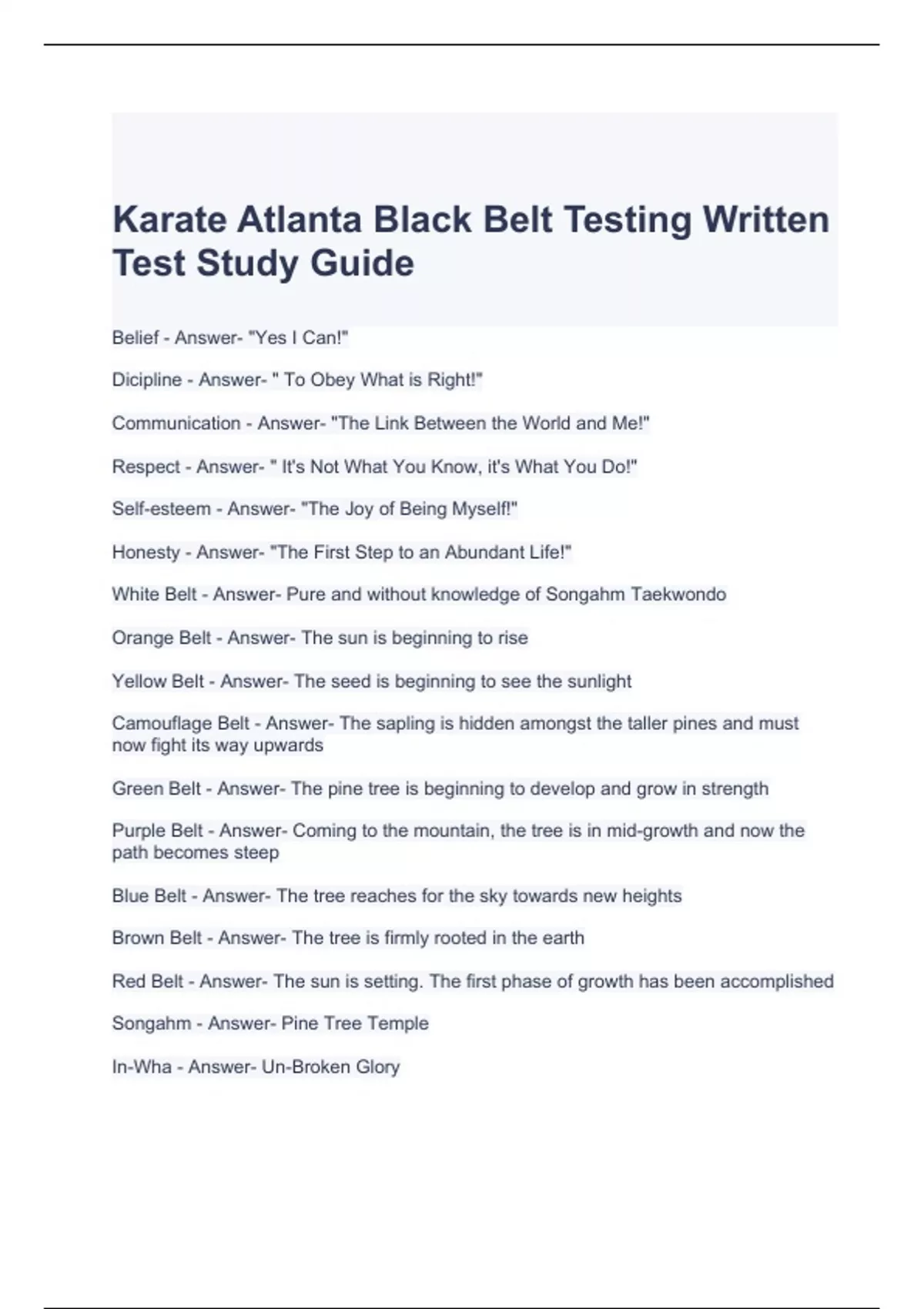 Karate Atlanta Black Belt Testing Written Test Study Guide