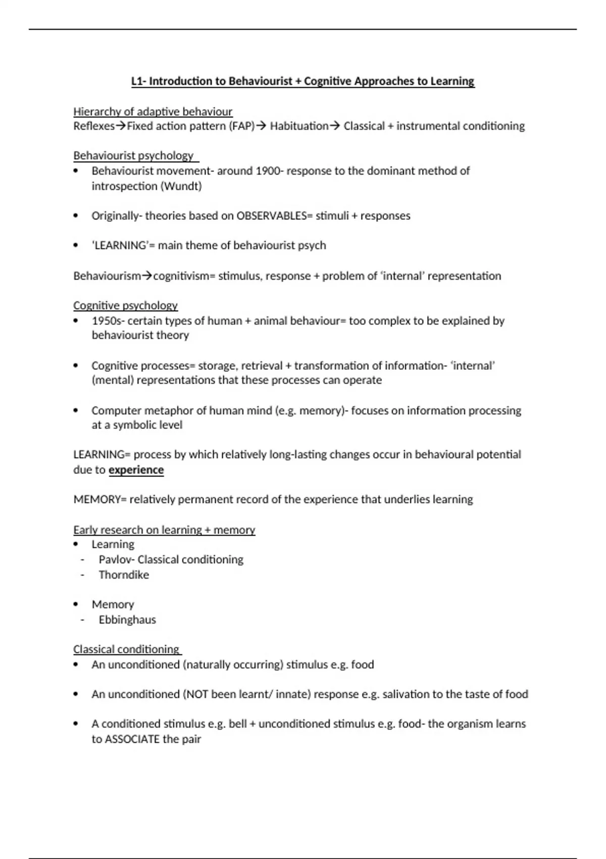 L1- Introduction to Behaviourist + Cognitive Approaches to Learning