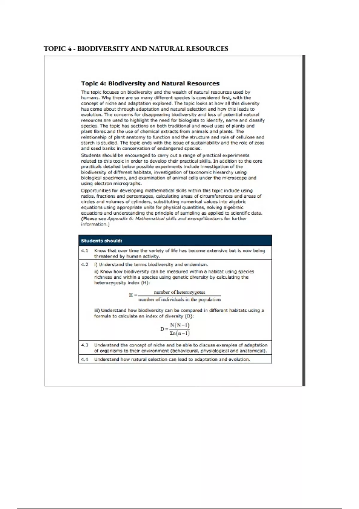 EDEXCEL (A) SALTERS-NUFFIELD BIOLOGY TOPIC 4 - BIODIVERSITY AND NATURAL RESOURCES
