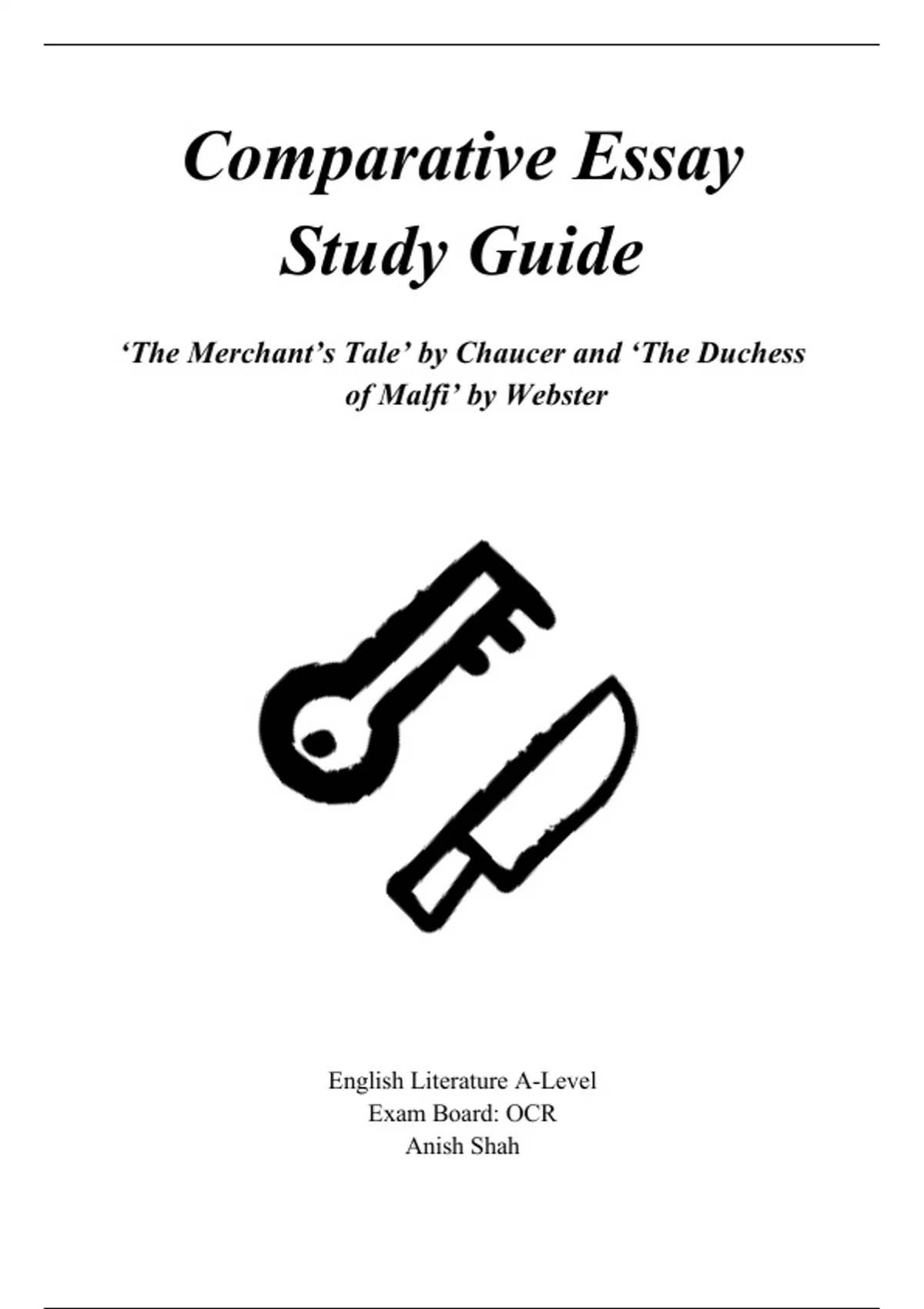 Summary Comparative Notes for 'The Duchess of Malfi' and 'The Merchants Tale' for OCR English literature alevel