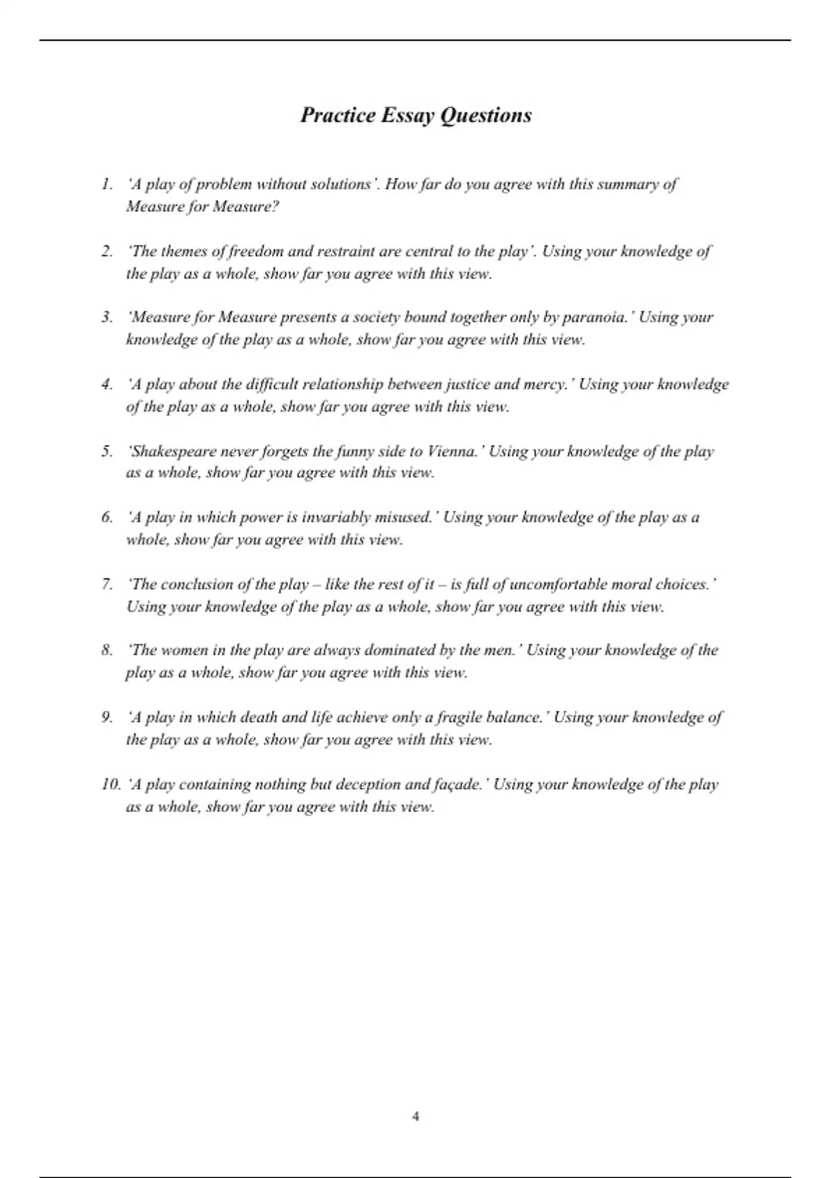 4. ‘A play about the difficult relationship between justice and mercy.’ Using your knowledge