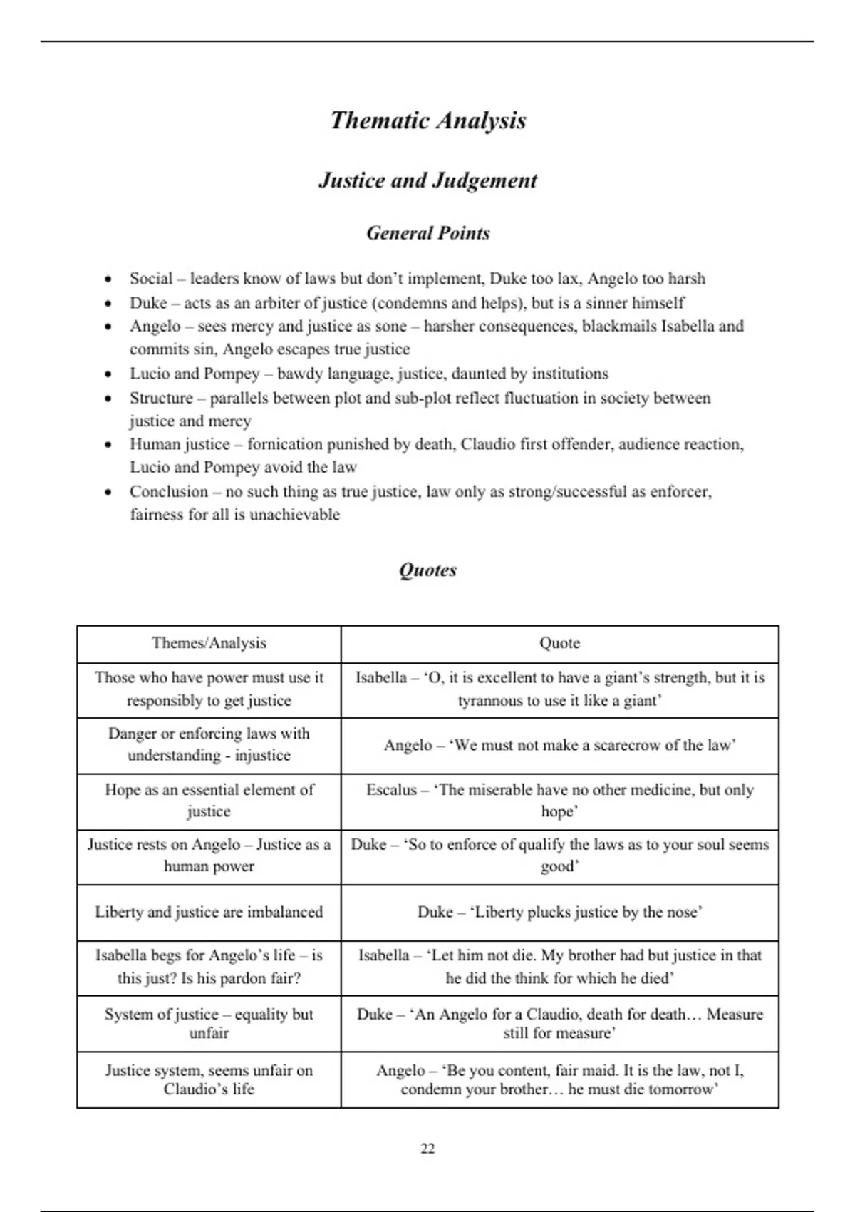 • Measure for measure – law of retaliation, Bible, ‘eye for an eye’