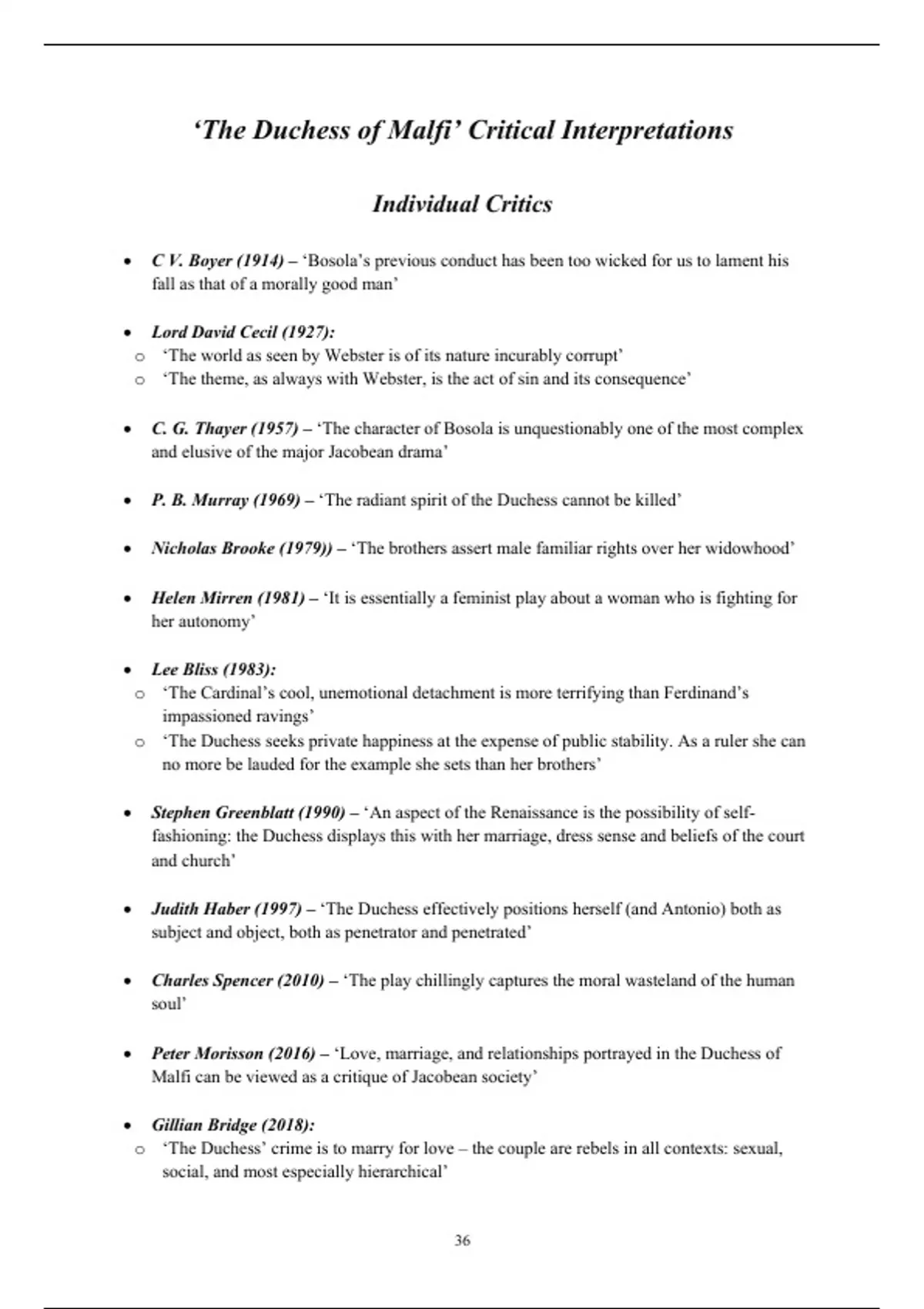 OCR A-Level English Literature The Duchess of Malfi Critical Information