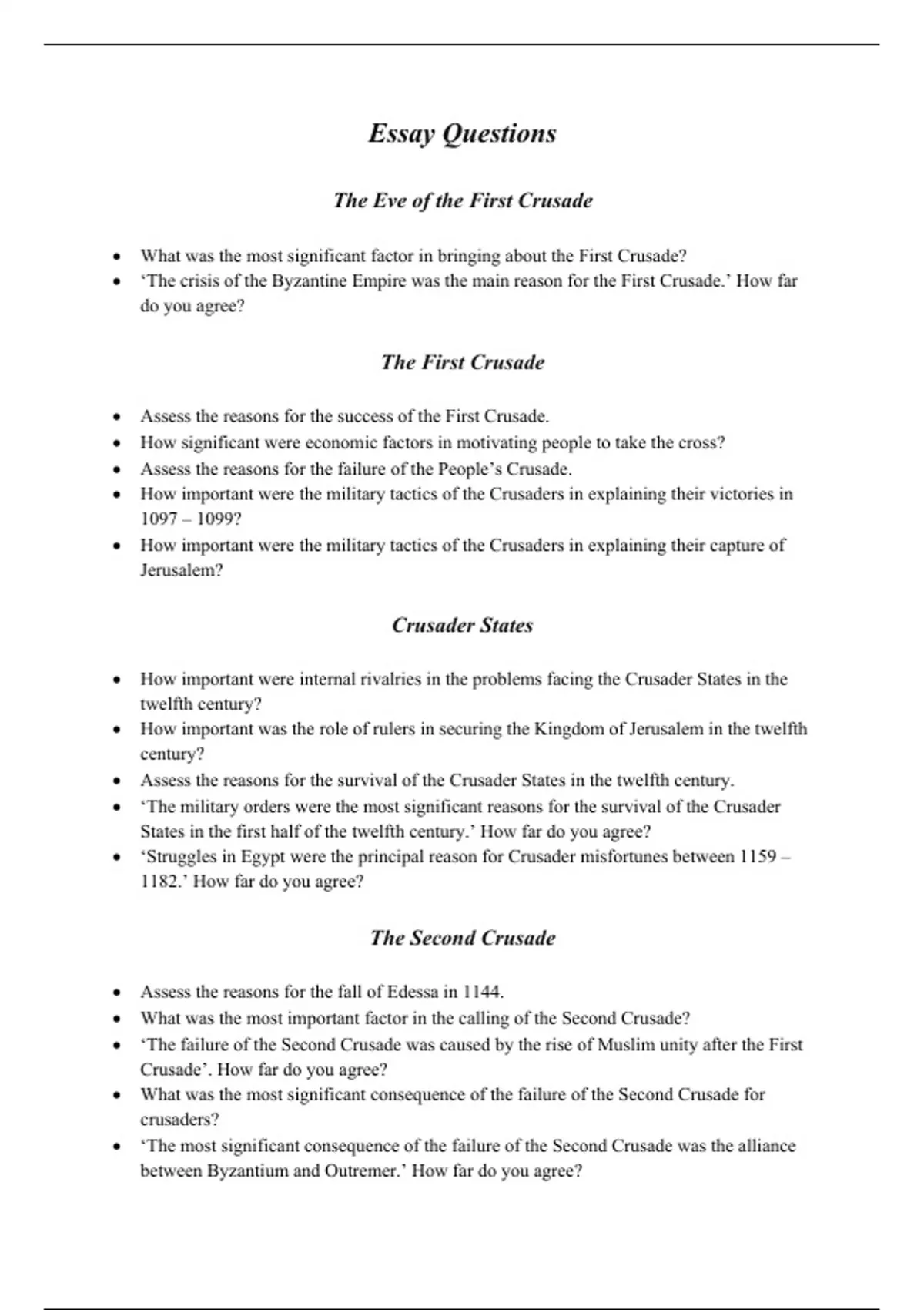• Assess the reasons for the survival of the Crusader States in the twelfth century.