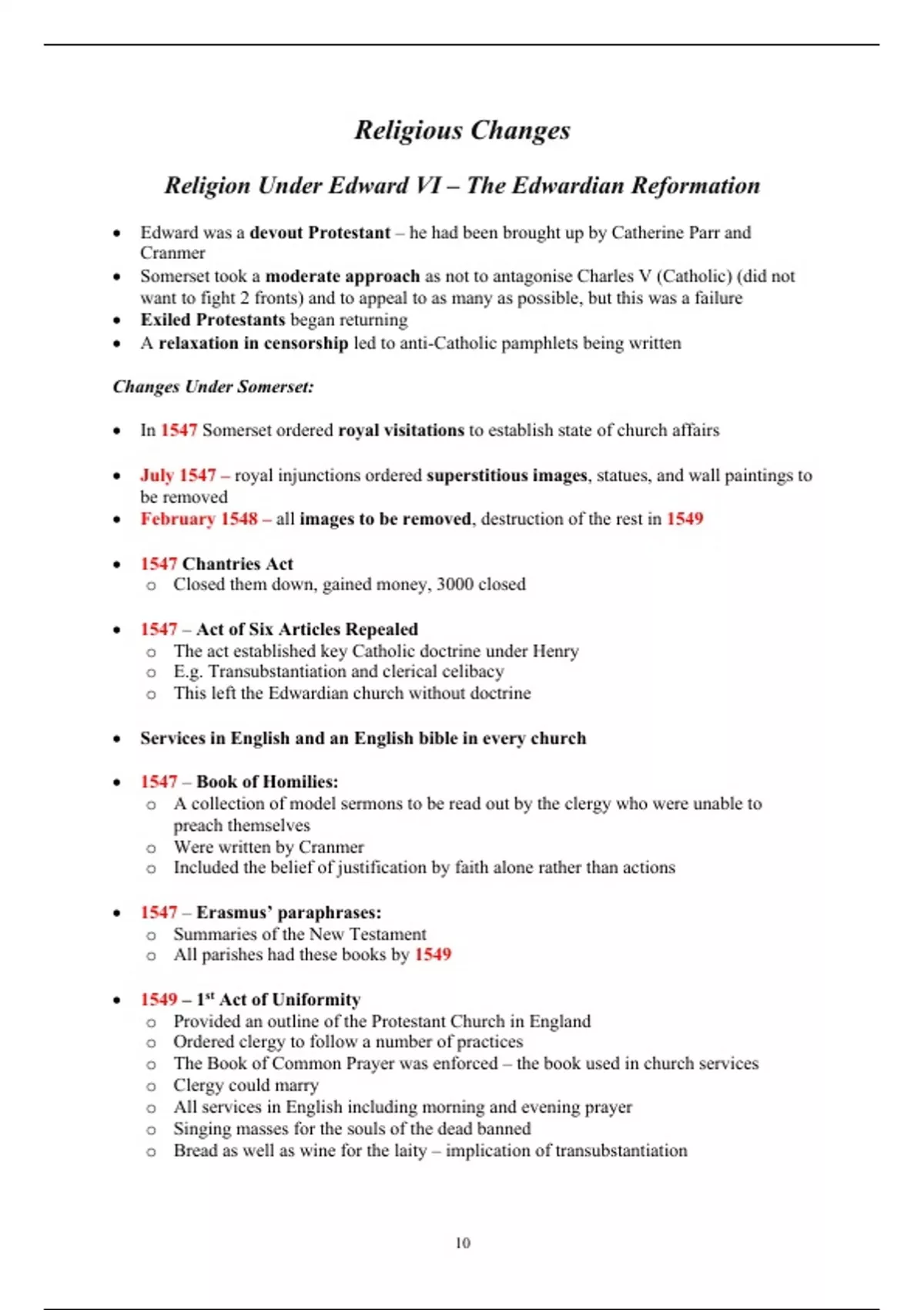• Edward was a devout Protestant – he had been brought up by Catherine Parr and
