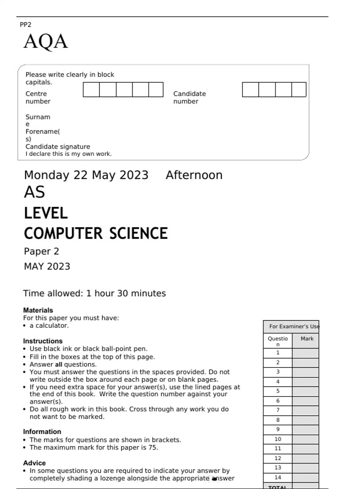 AQA AS LEVEL COMPUTER SCIENCE Paper 2 MAY 2023 FINAL QUESTION PAPER