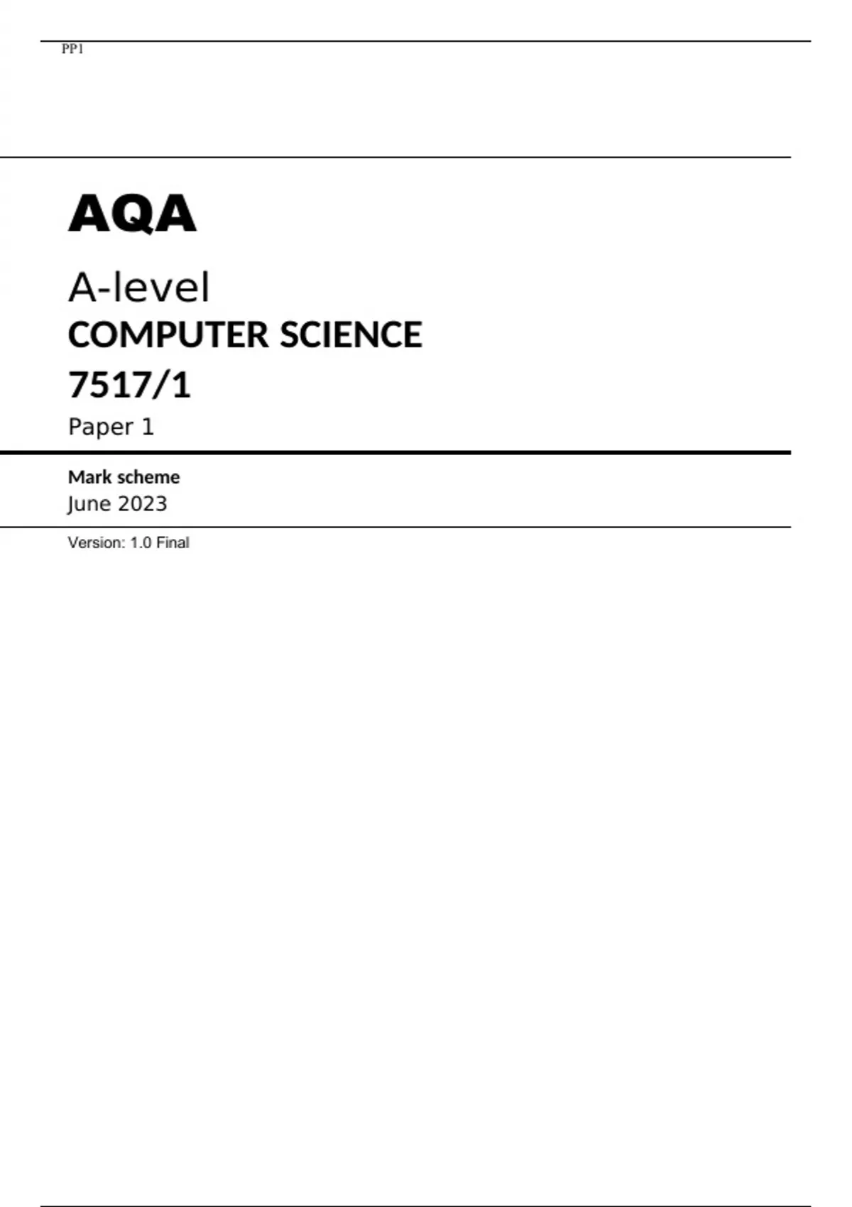 AQA A-level COMPUTER SCIENCE 7517/1 Paper 1 June 2023 FINAL MARK SCHEME