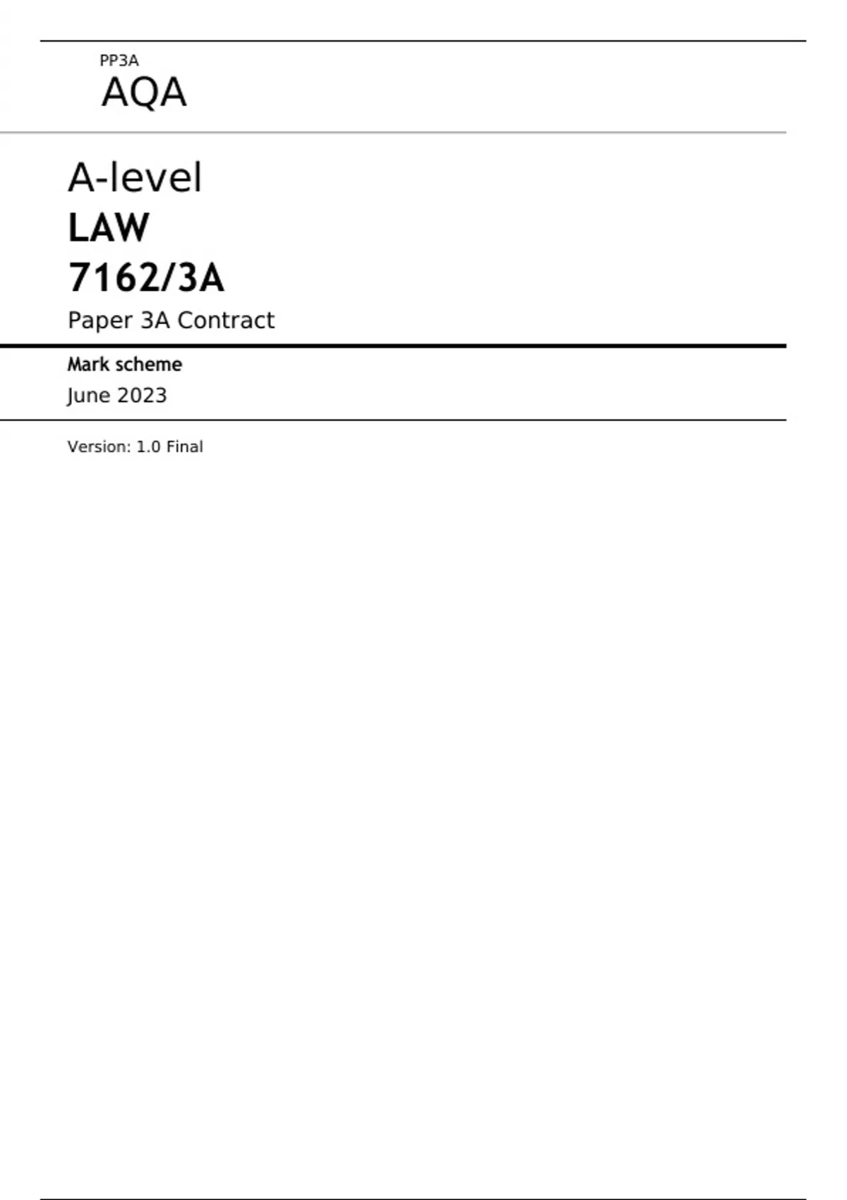 AQA A-level LAW 7162/3A Paper 3A June 2023 FINAL MARK SCHEME Contract