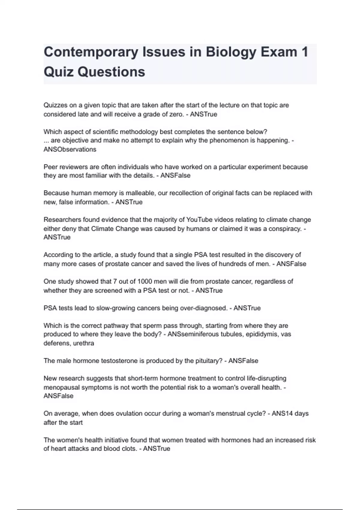 Contemporary Issues in Biology Exam 1 Quiz Questions 2024/2025 already graded A+