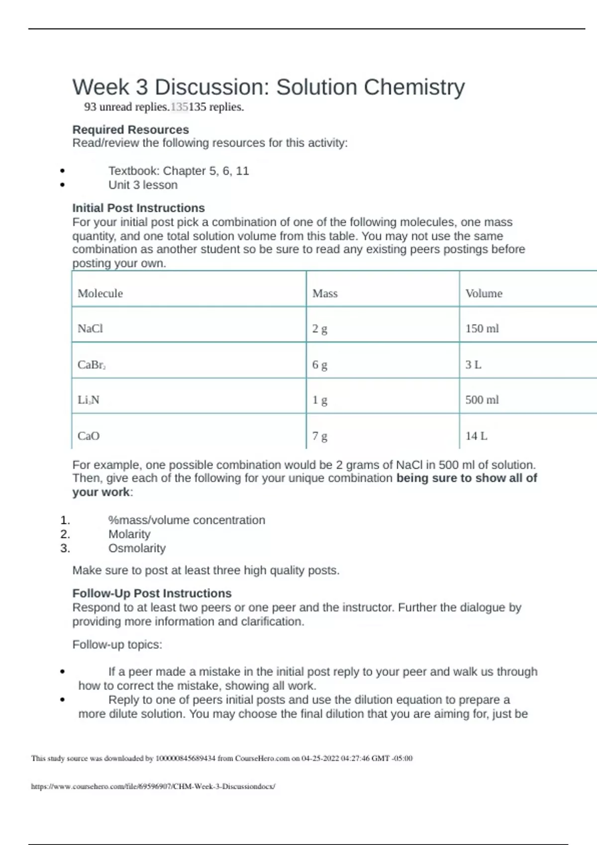 CHEM 120 Unit 3 Discussion Solution Chemistry | Download To Score An A