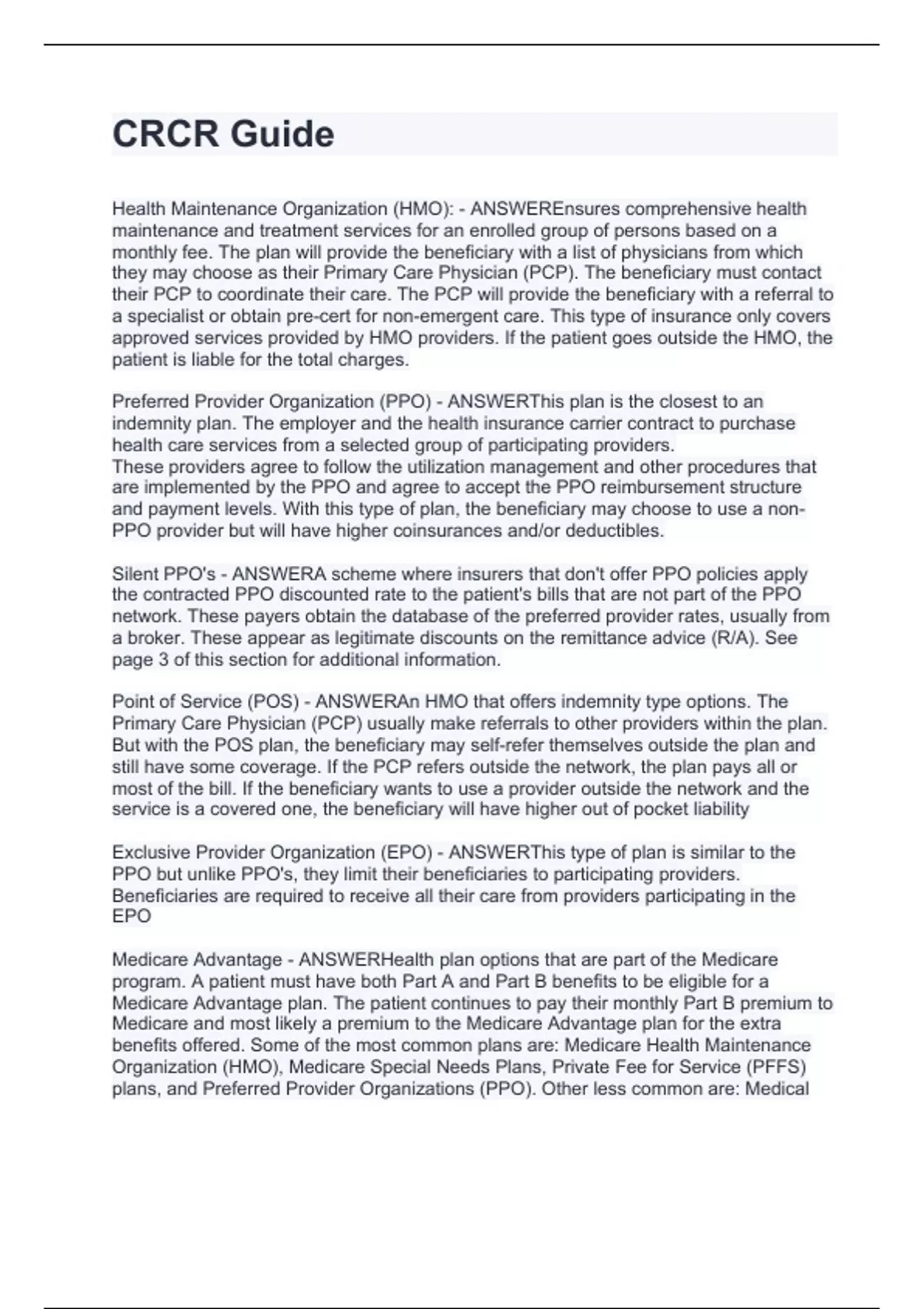 CRCR Guide.Test guide with answers 2024