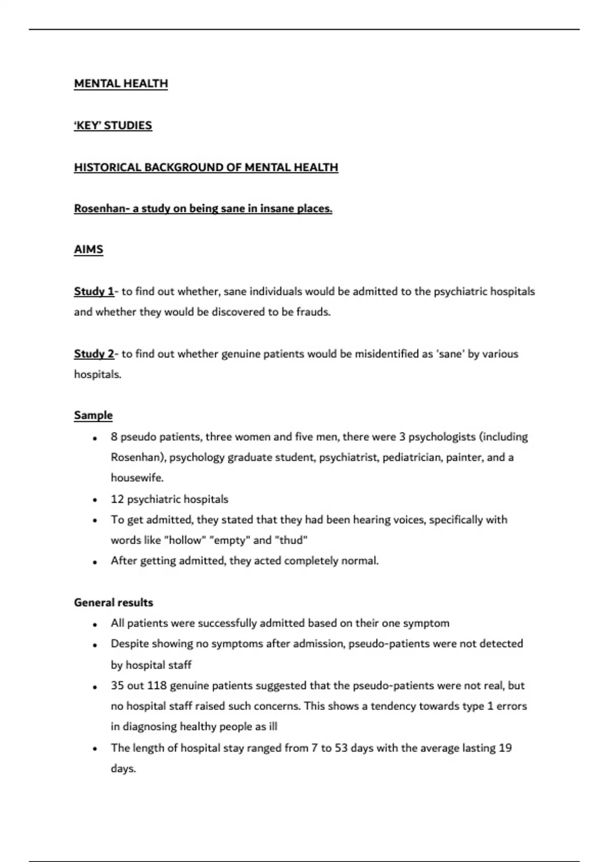 Study 1- to find out whether, sane individuals would be admitted to the psychiatric hospitals