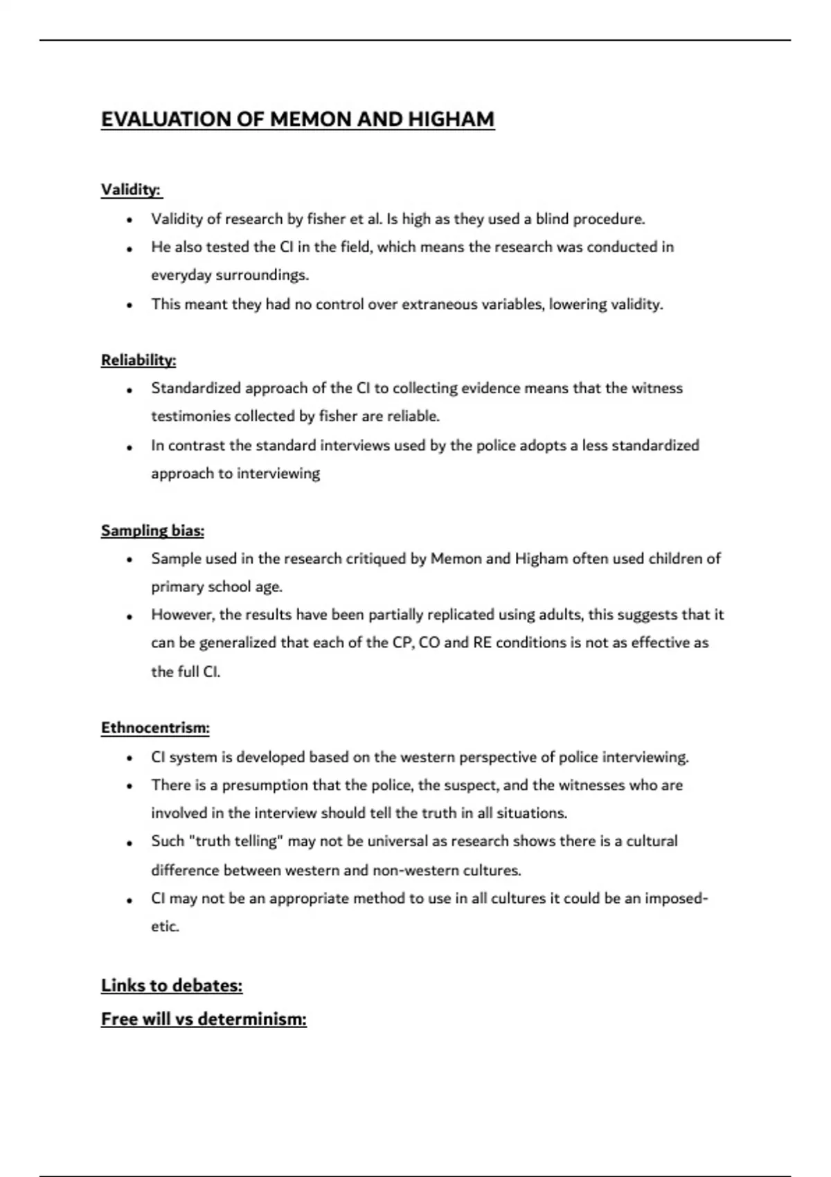 • Sample used in the research critiqued by Memon and Higham often used children of