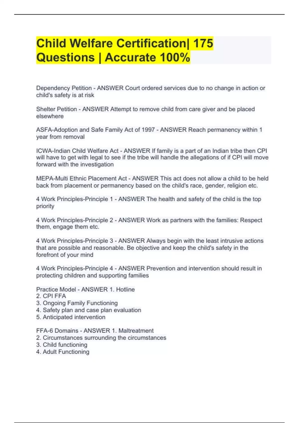 child welfare certification 175 questions accur