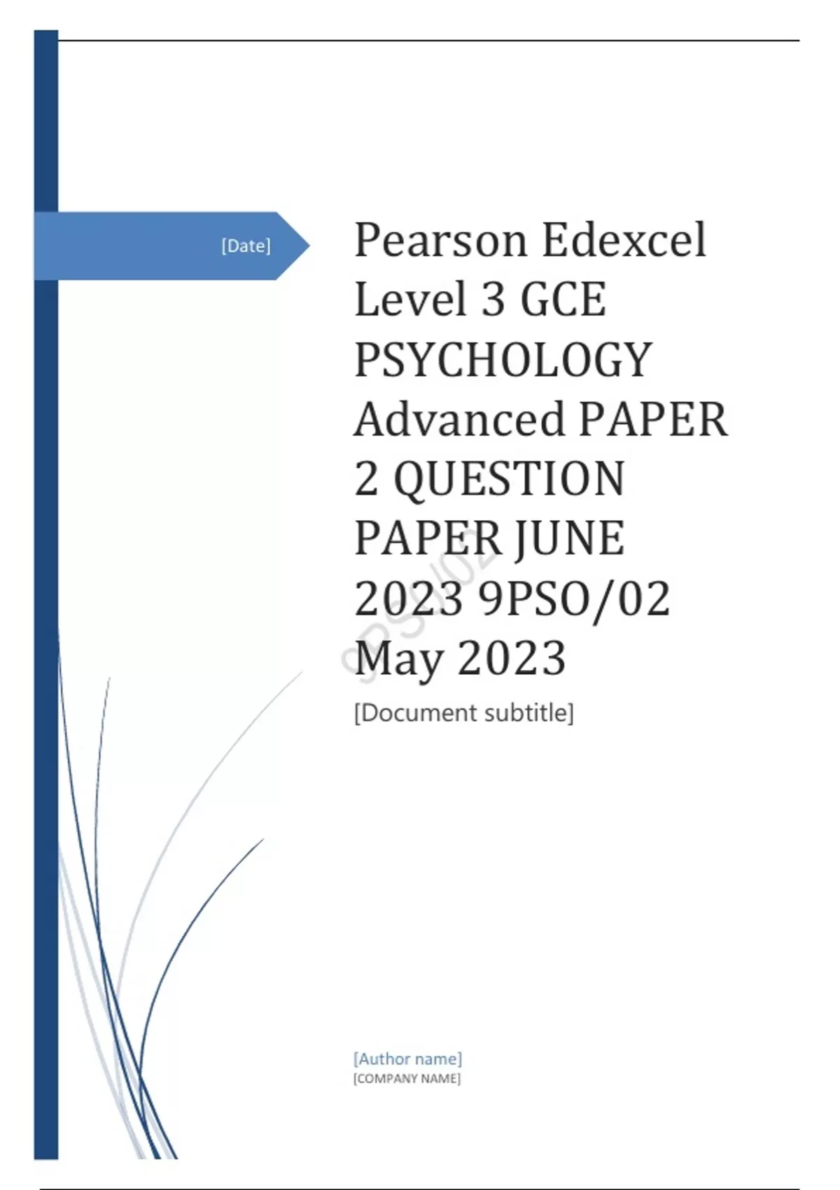 Edexcel Level 3 GCE PSYCHOLOGY Advanced PAPER 2 QUESTION PAPER JUNE 2023 9PSO/02 May 2023 [Document subtitle]